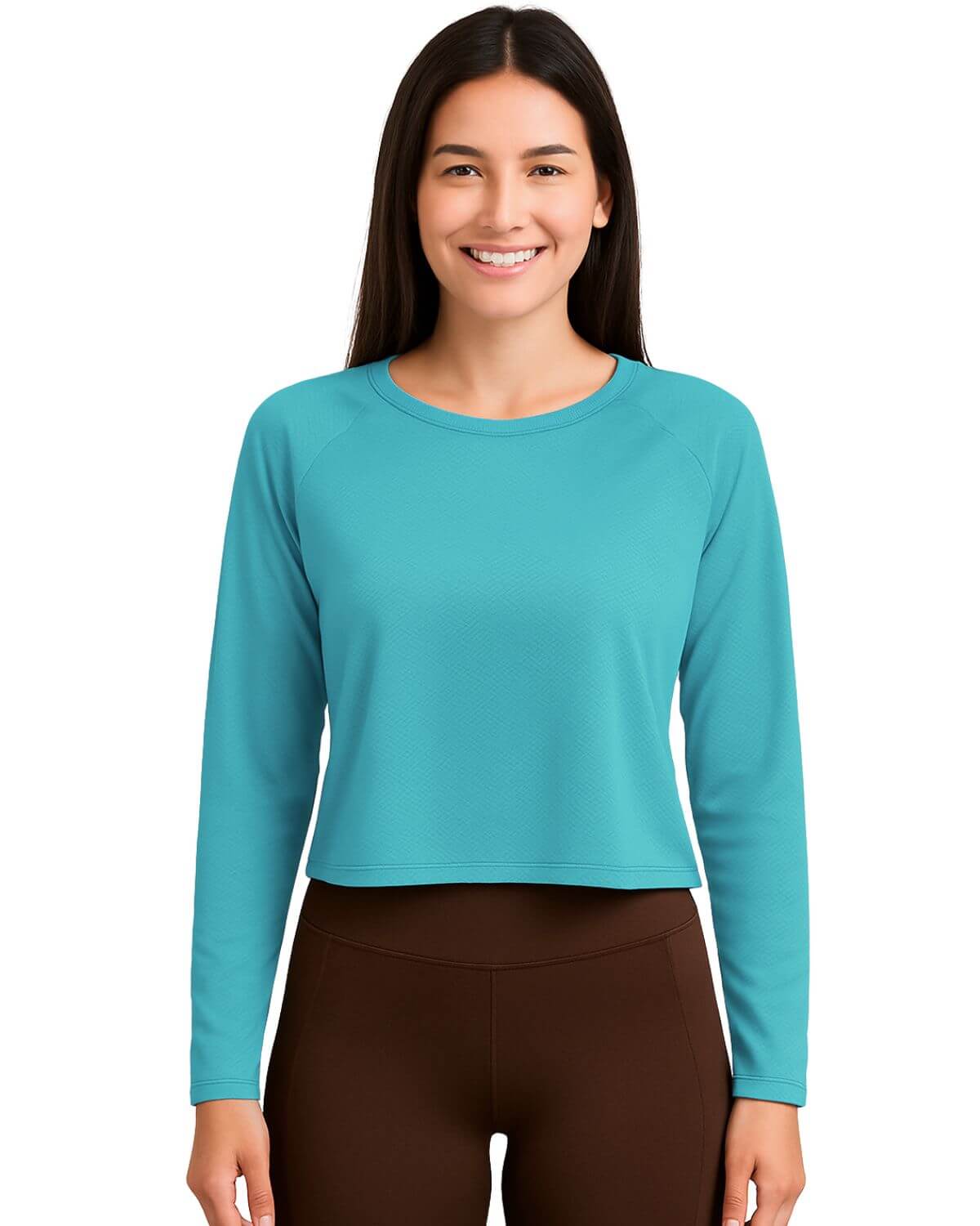 Blusa Modelo cropped com manga longa, feito em dry fit pisco