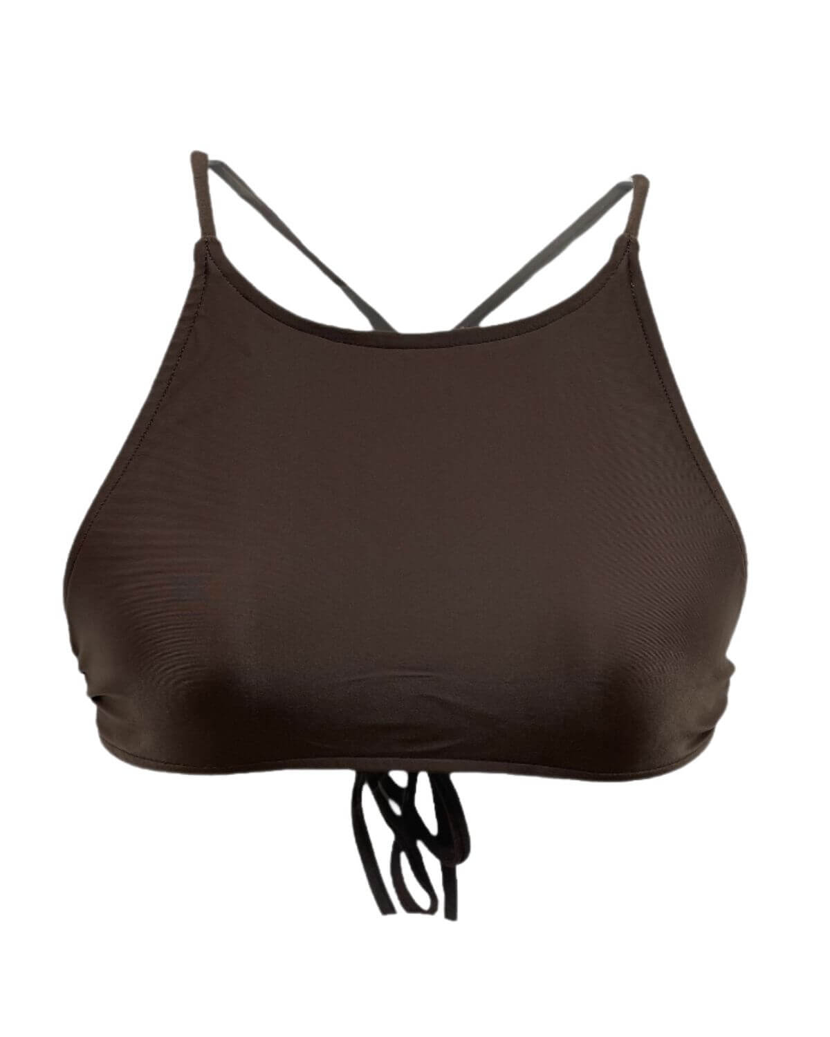 -Top de biquíni modelo cropped sem bojo com decote abaixo do pescoço e cruzado nas costas. Modelo ideal para quem busca conforto e liberdade. Confeccionado com Tecido Lycra Cor Marrom Composição do tecido: 85% poliamida e 15% Elastano Bojo composição: 100% Poliéster, enchimento 100% Poliuretano. Proteção UV. 50 +