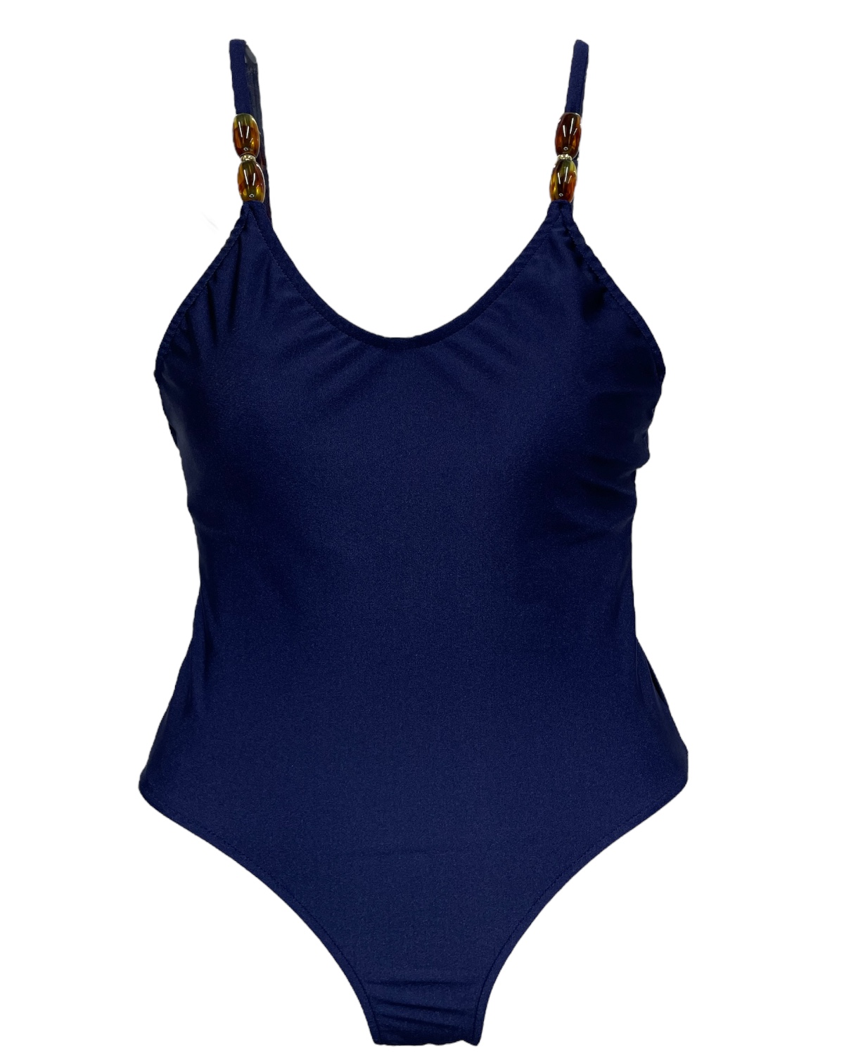 Maiô Básico alça fina com regulador. Costas decote em U. – Bojo removível – Detalhes nas alças feitos à mão com contas ( Beads) e metais.