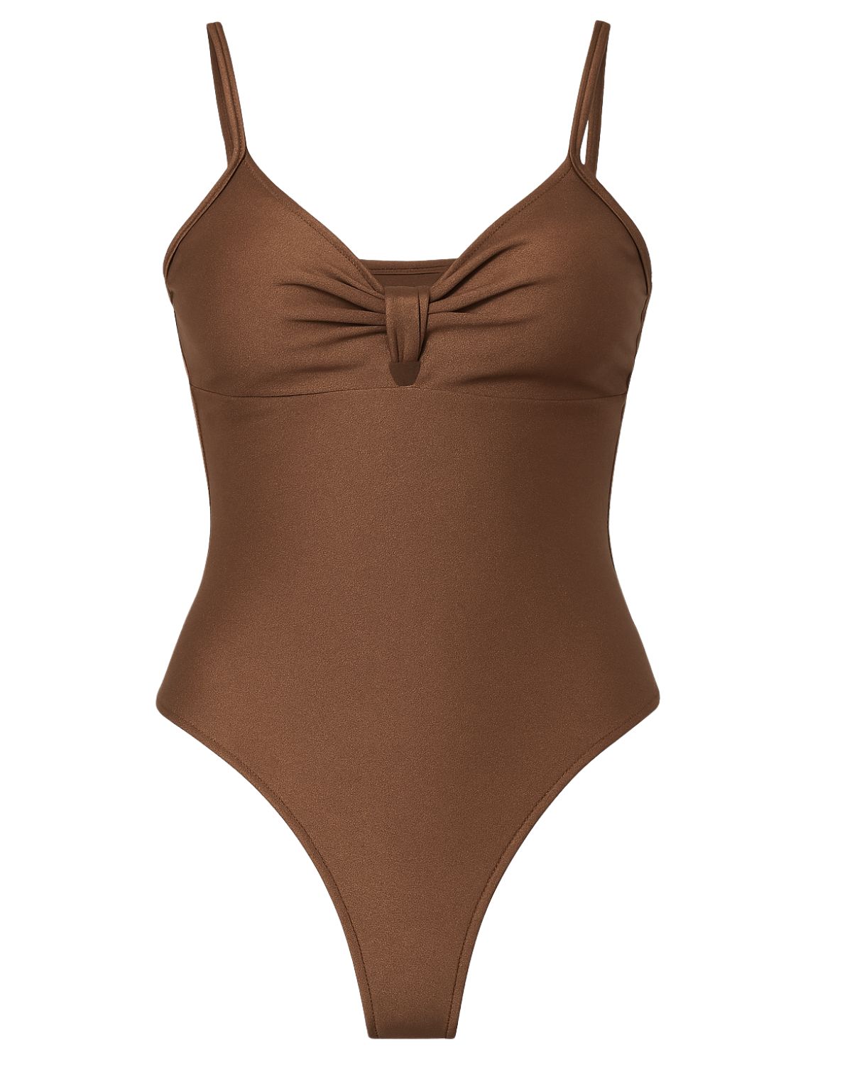 Maiô clássico com detalhe frontal no busto, amarração nas costas para ajuste.