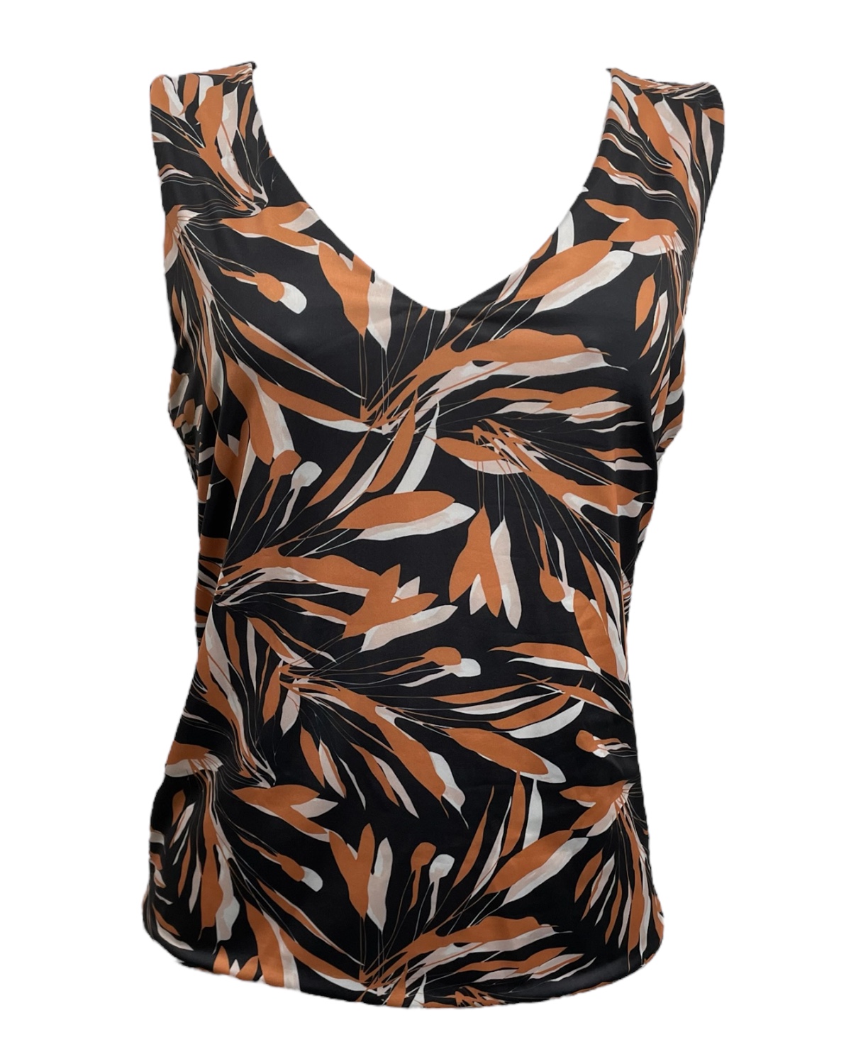Regata dupla decote em V e costas reta. Confeccionada em tecido leve e fluido com caimento perfeito.