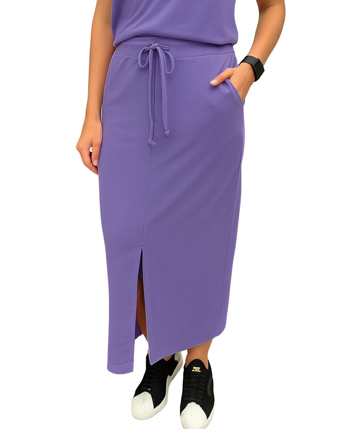 Confeccionada em tecido fleece macio, com toque leve e caimento confortável. Modelagem reta com fenda frontal, cós com elástico e amarração ajustável para maior praticidade. Possui bolsos laterais funcionais. Uma peça versátil e quentinha, perfeita para compor looks casuais com estilo nos dias mais frescos.