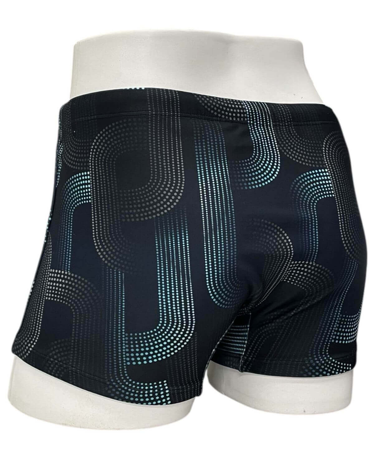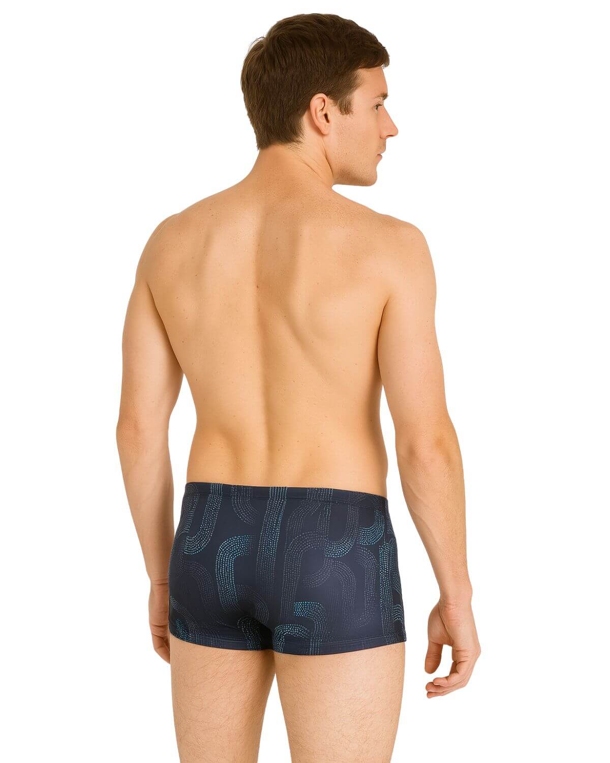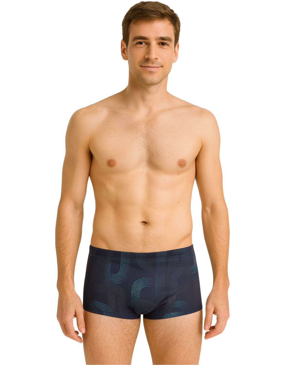 Sunga modelagem boxer, tem cordão de ajuste no cós, possui forro na frente e costas. É resistente ao cloro.