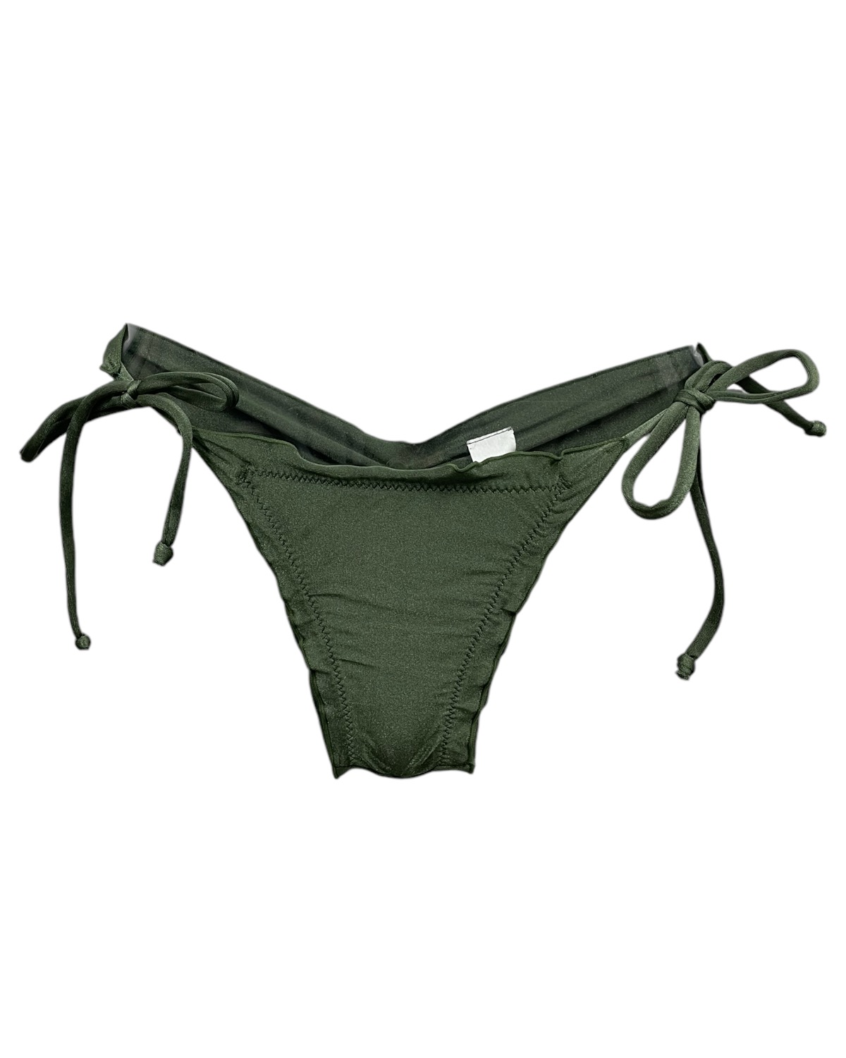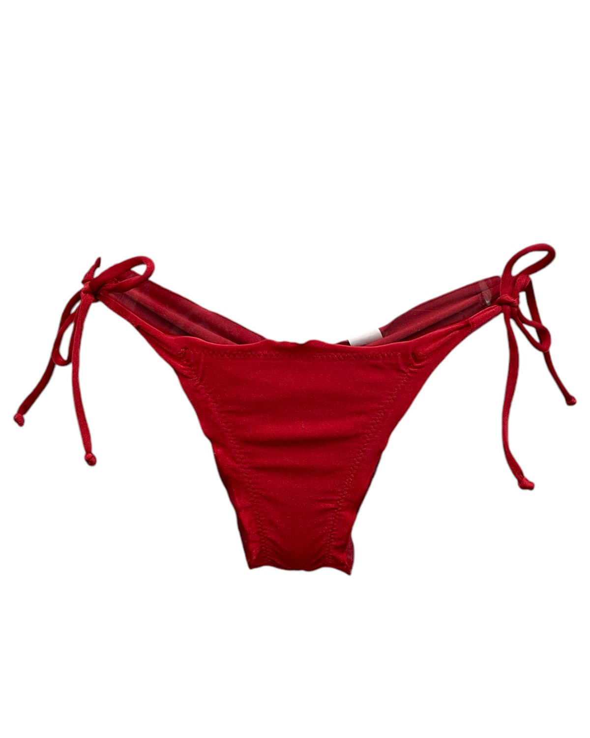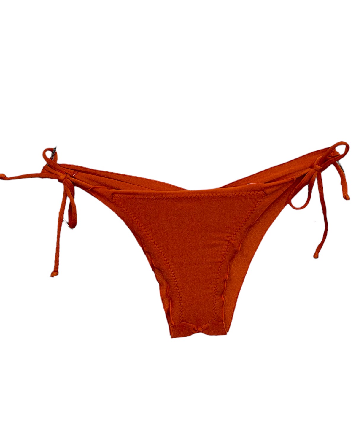 Tanga de biquíni babadinho e amarração de laços finos na lateral.