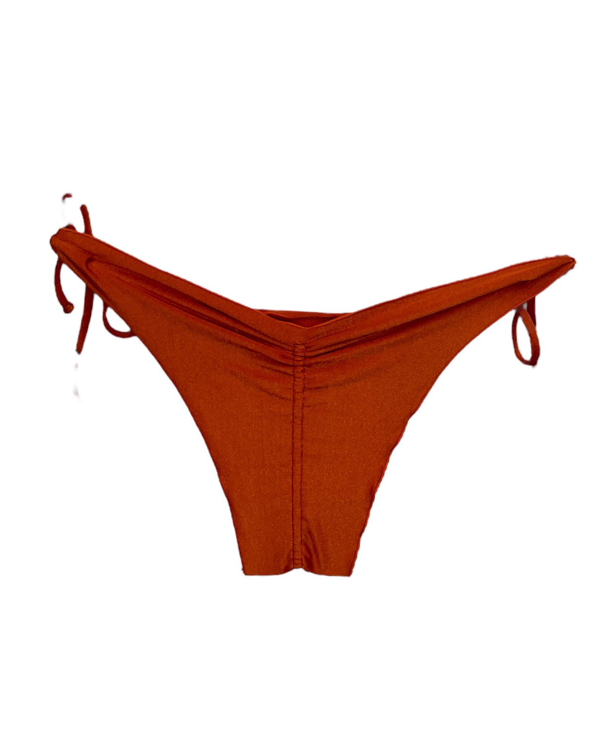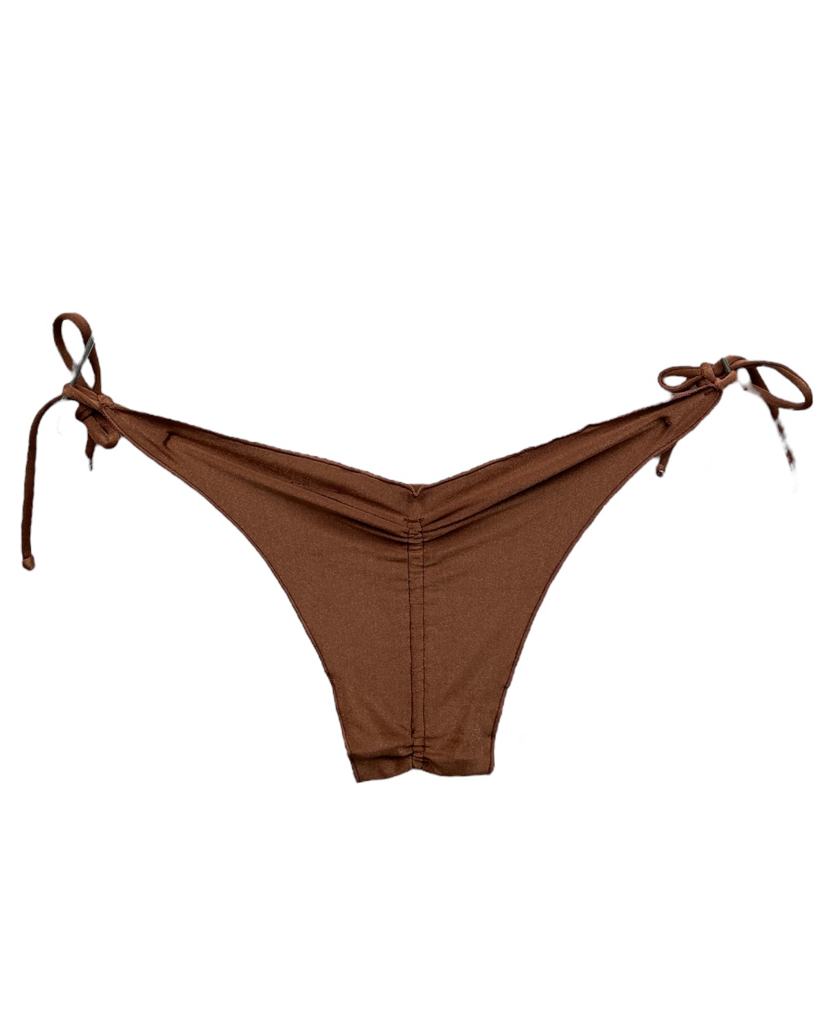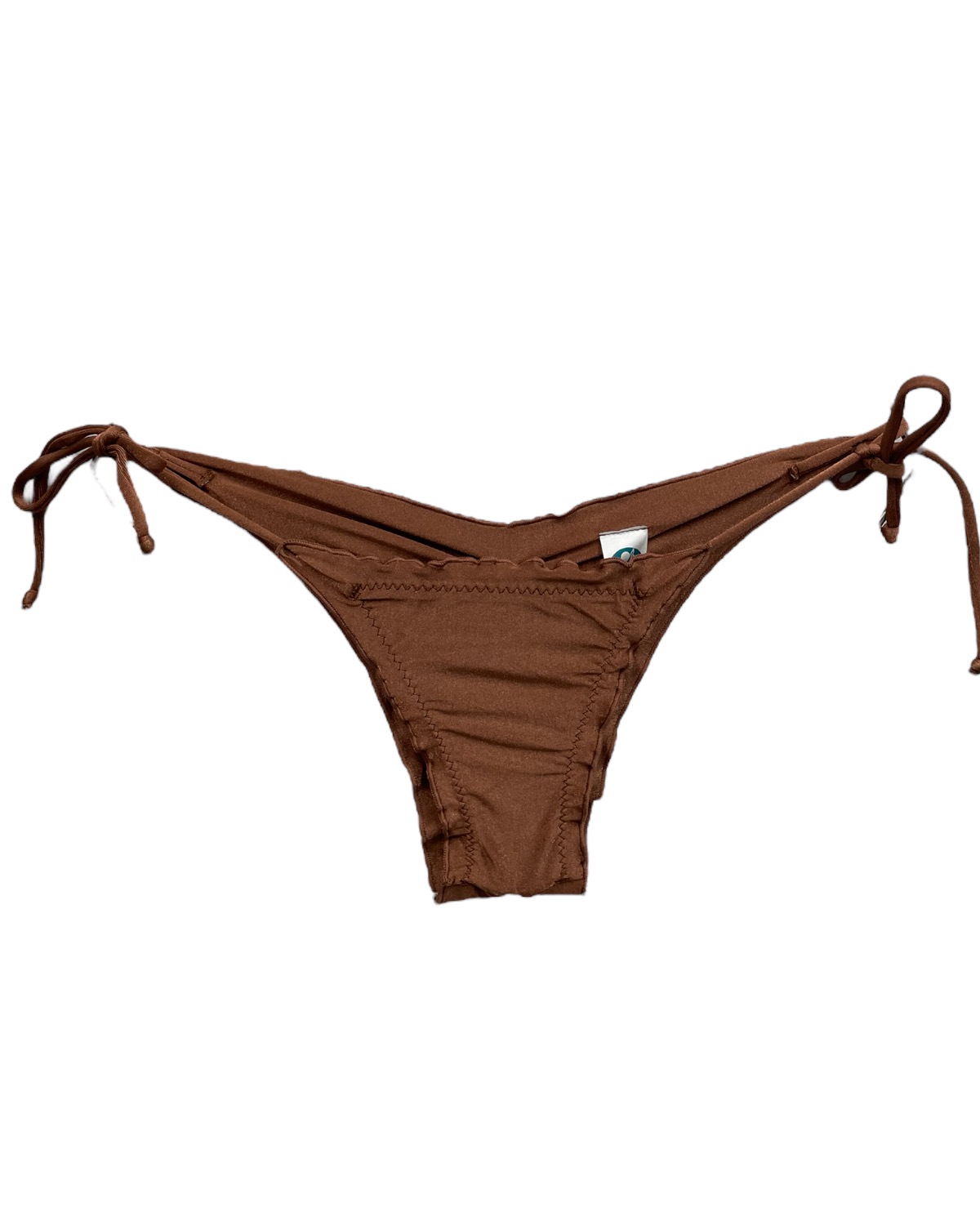 Tanga de biquíni babadinho e amarração de laços finos na lateral.