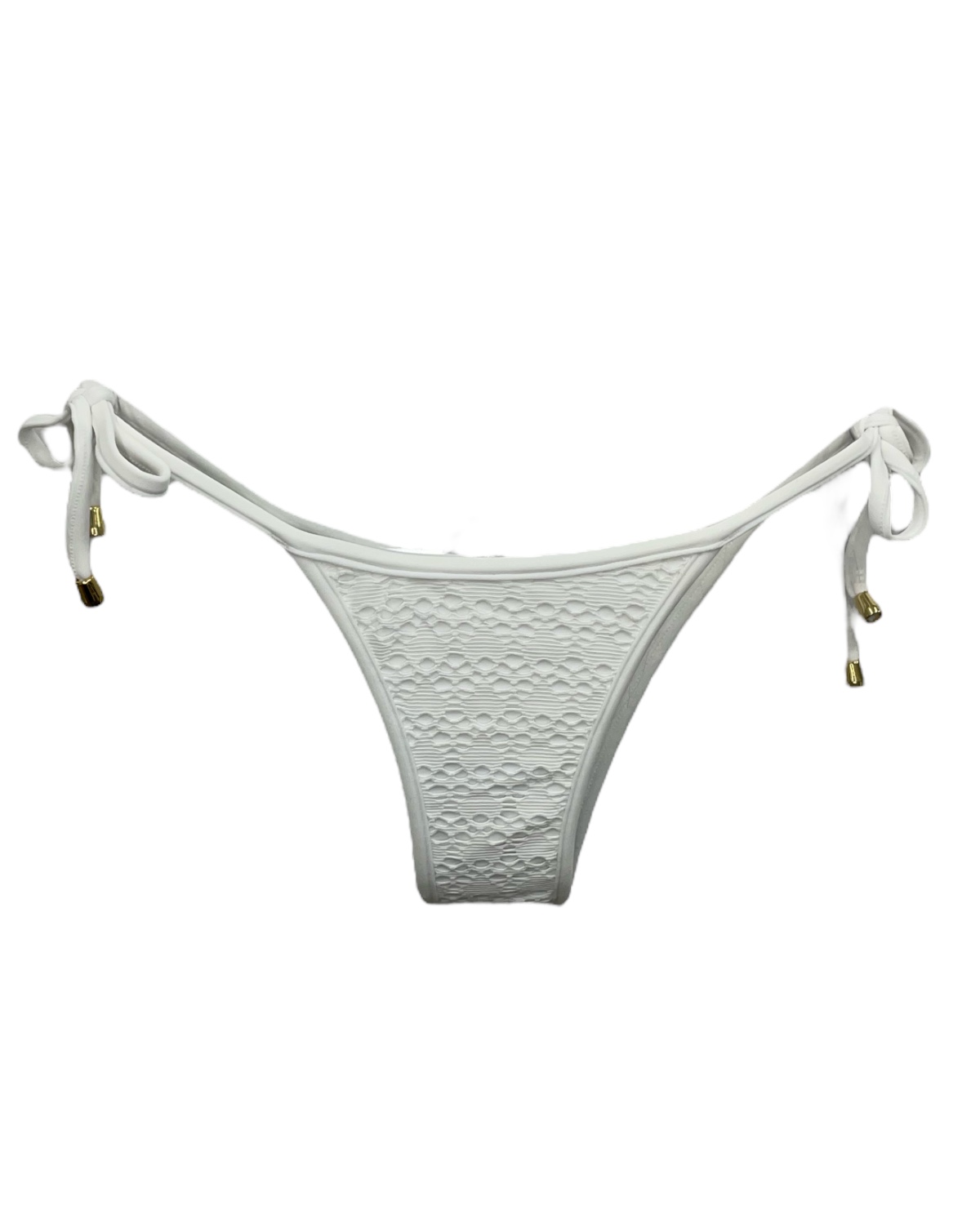 Tanga de biquíni com amarração na lateral com laços e ponteira. Confeccionado em tecido renda e lycra. Tecido/composição externo: 93% Poliamida 07% Elastano e Tecido/composição interno: 85% Poliamida 15% Elastano.