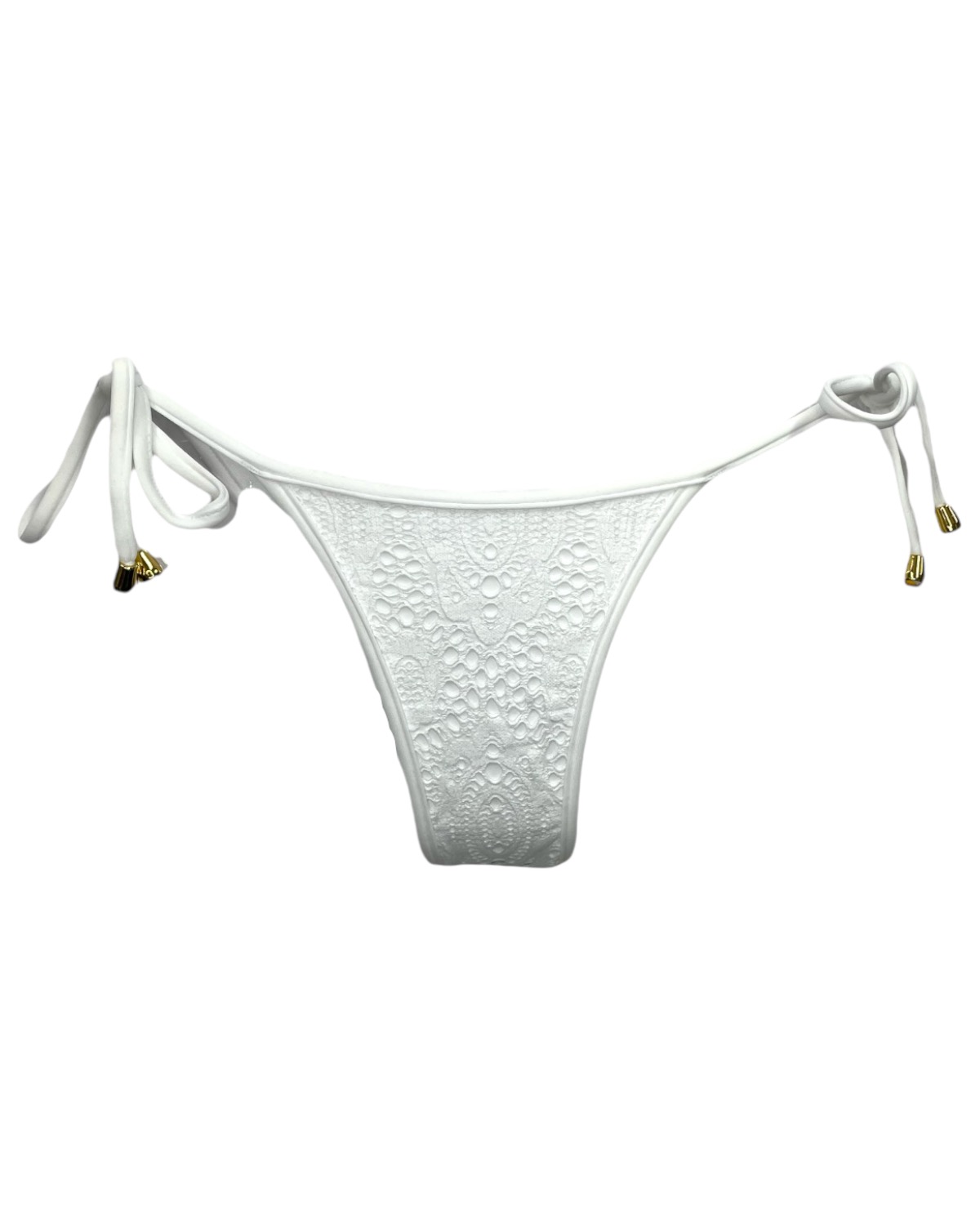Tanga de biquíni com amarração na lateral com laços e ponteira.