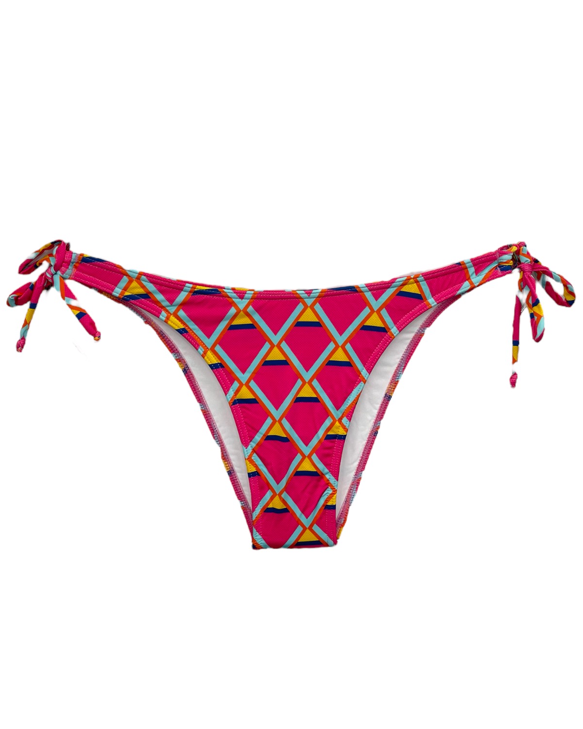 Tanga de biquíni lateral média com detalhe de amarração na lateral com laços.