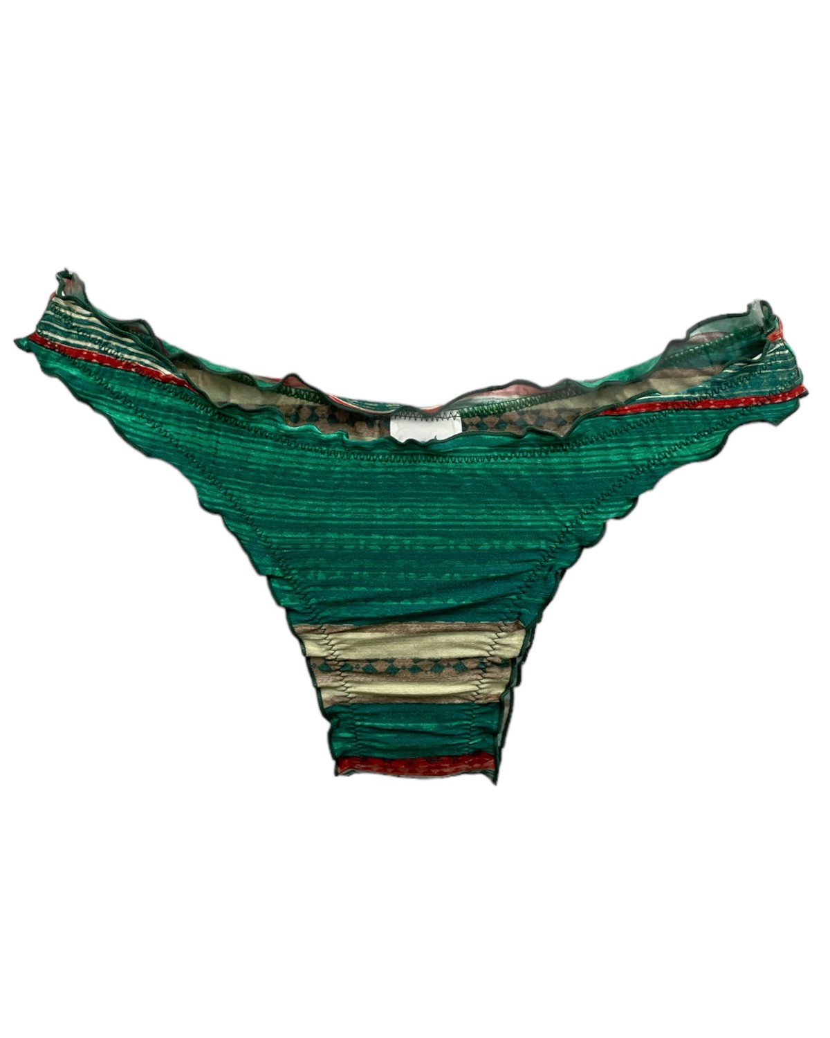 Tanga de biquíni com detalhe de babadinho contrastante. Modelagem pequena. Confeccionado com Tecido estampado.