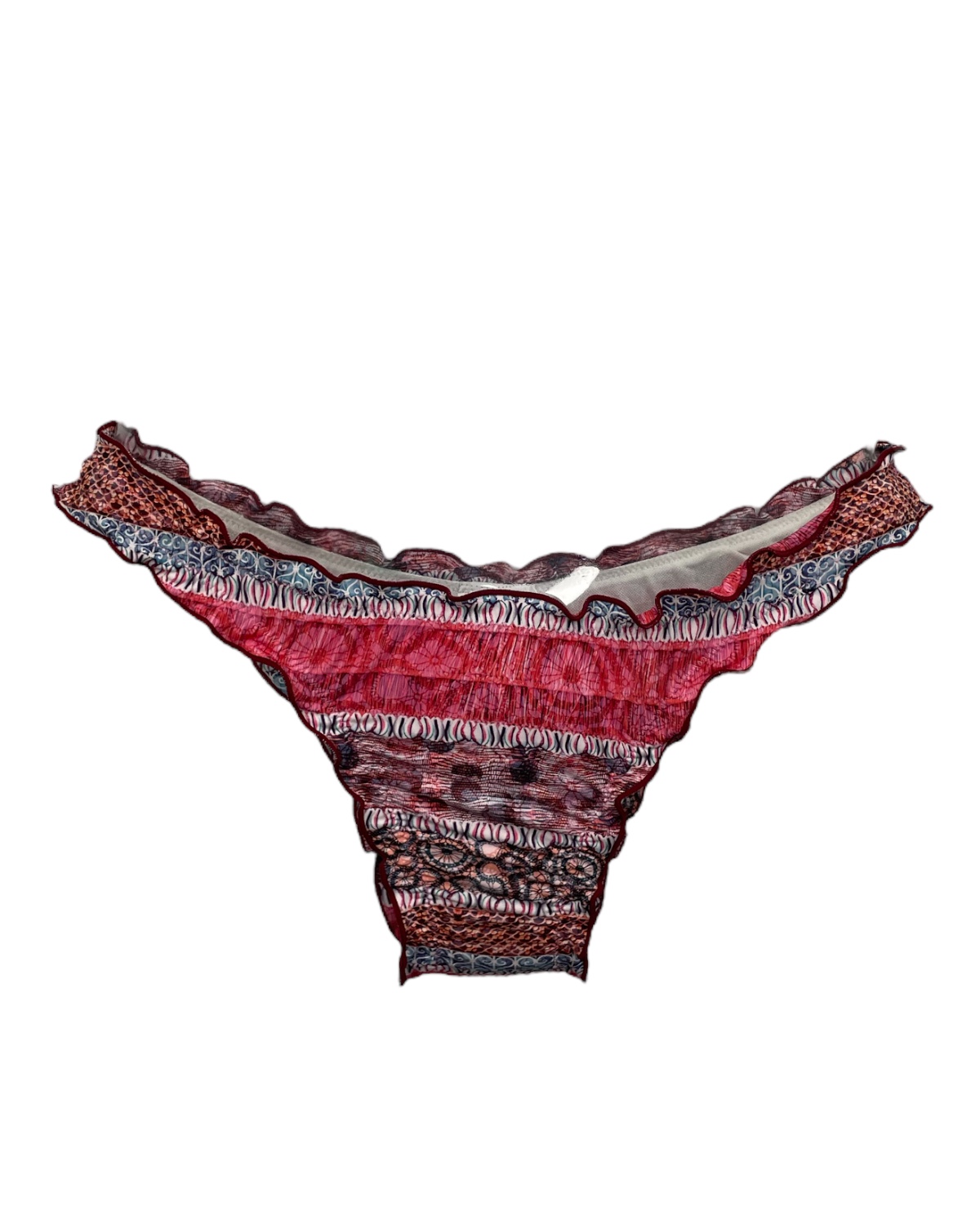 Tanga de biquíni com detalhe de babadinho contrastante. Modelagem pequena.