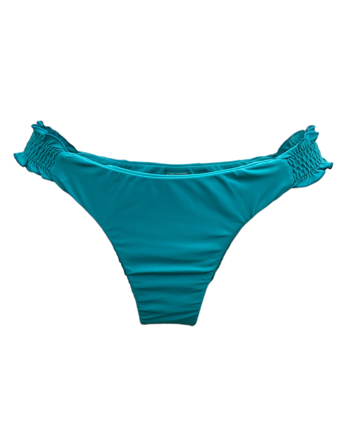 Tanga de biquíni lateral com elástico e babadinho. Modelagem média e costuras não aparentes. Ideal para quem busca conforto.
