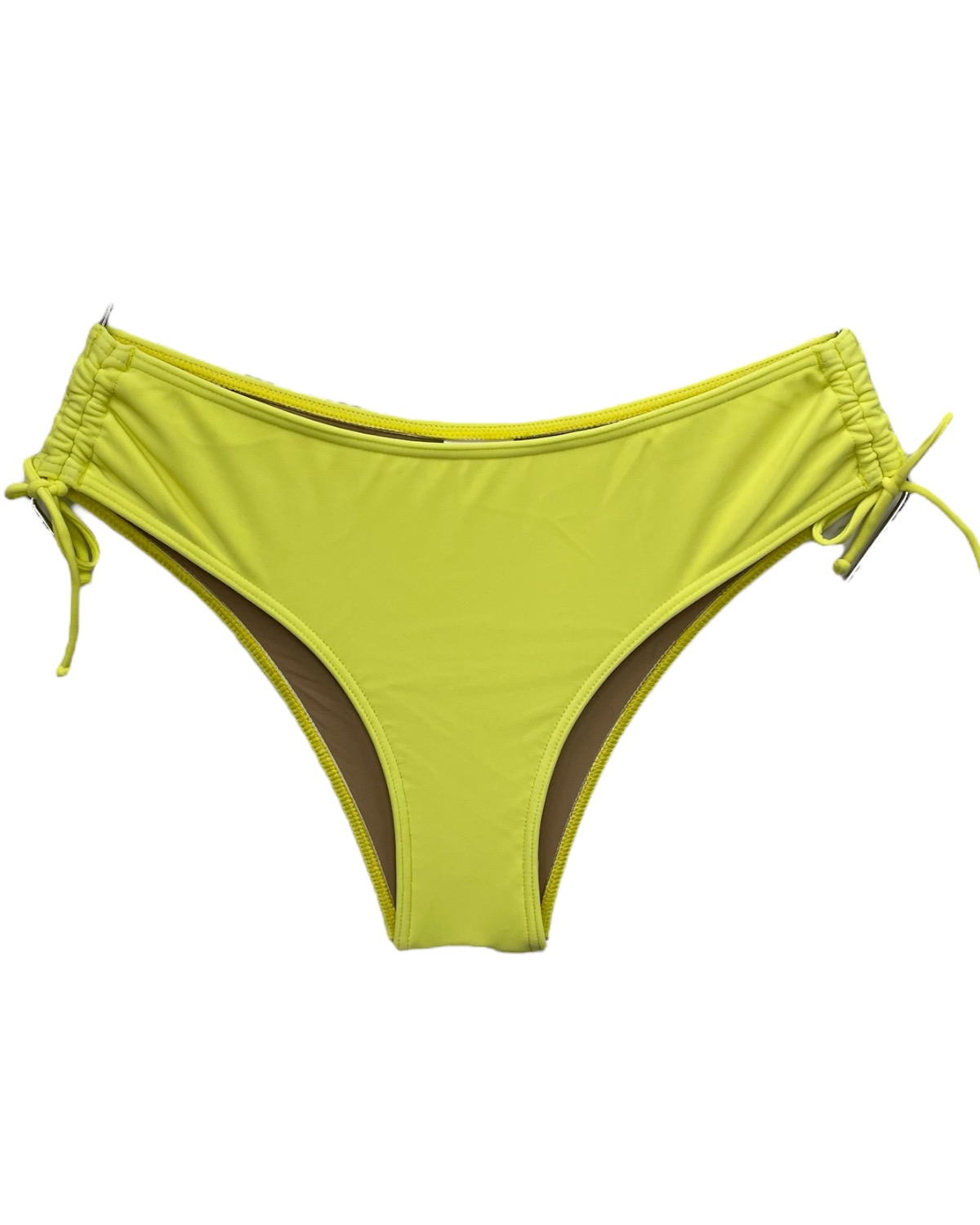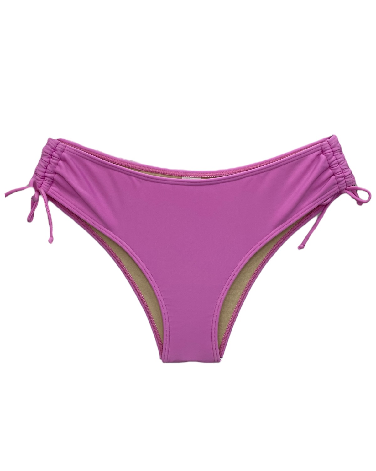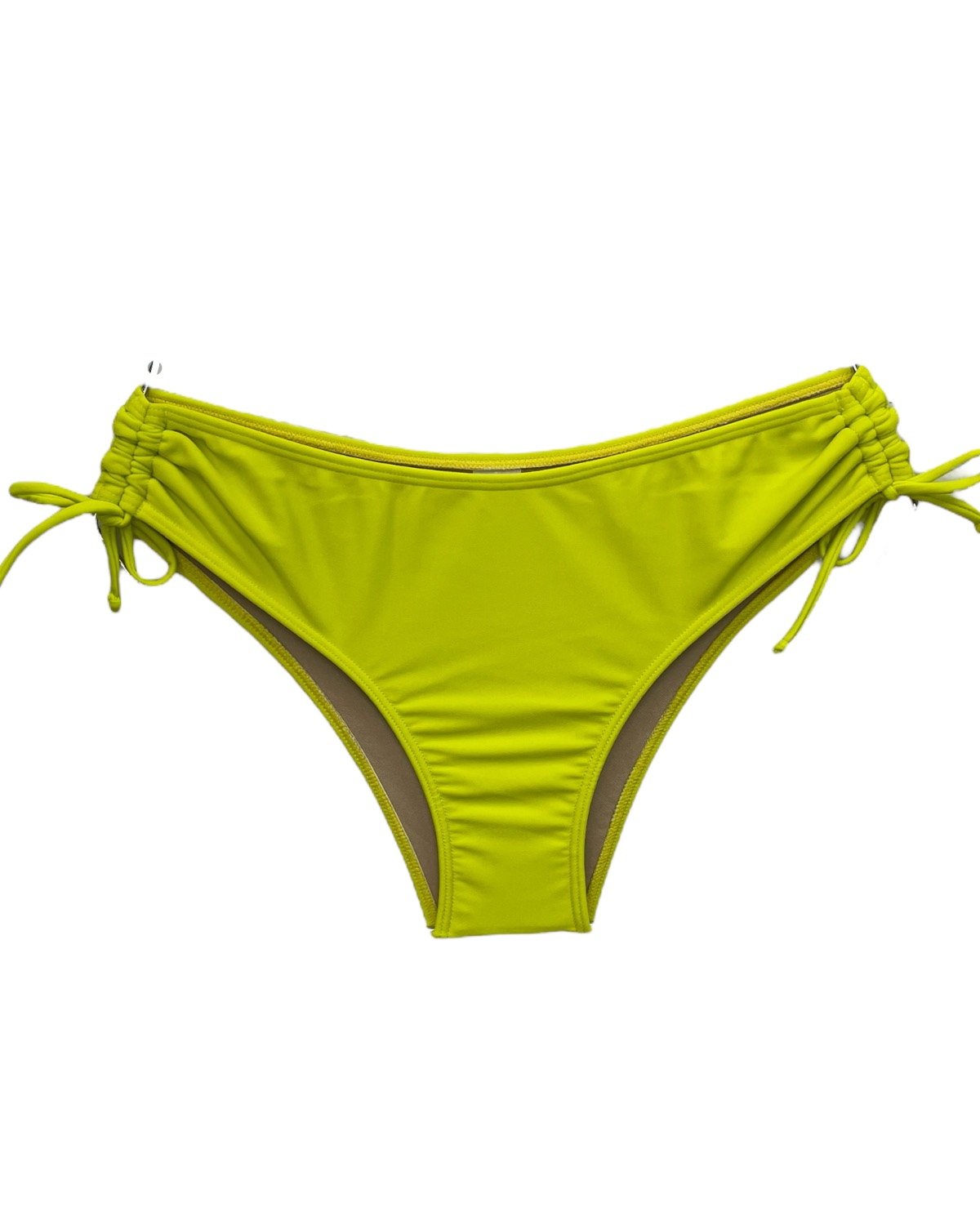 Tanga de biquíni lateral média com detalhe franzido e regulável. confeccionada em lycra