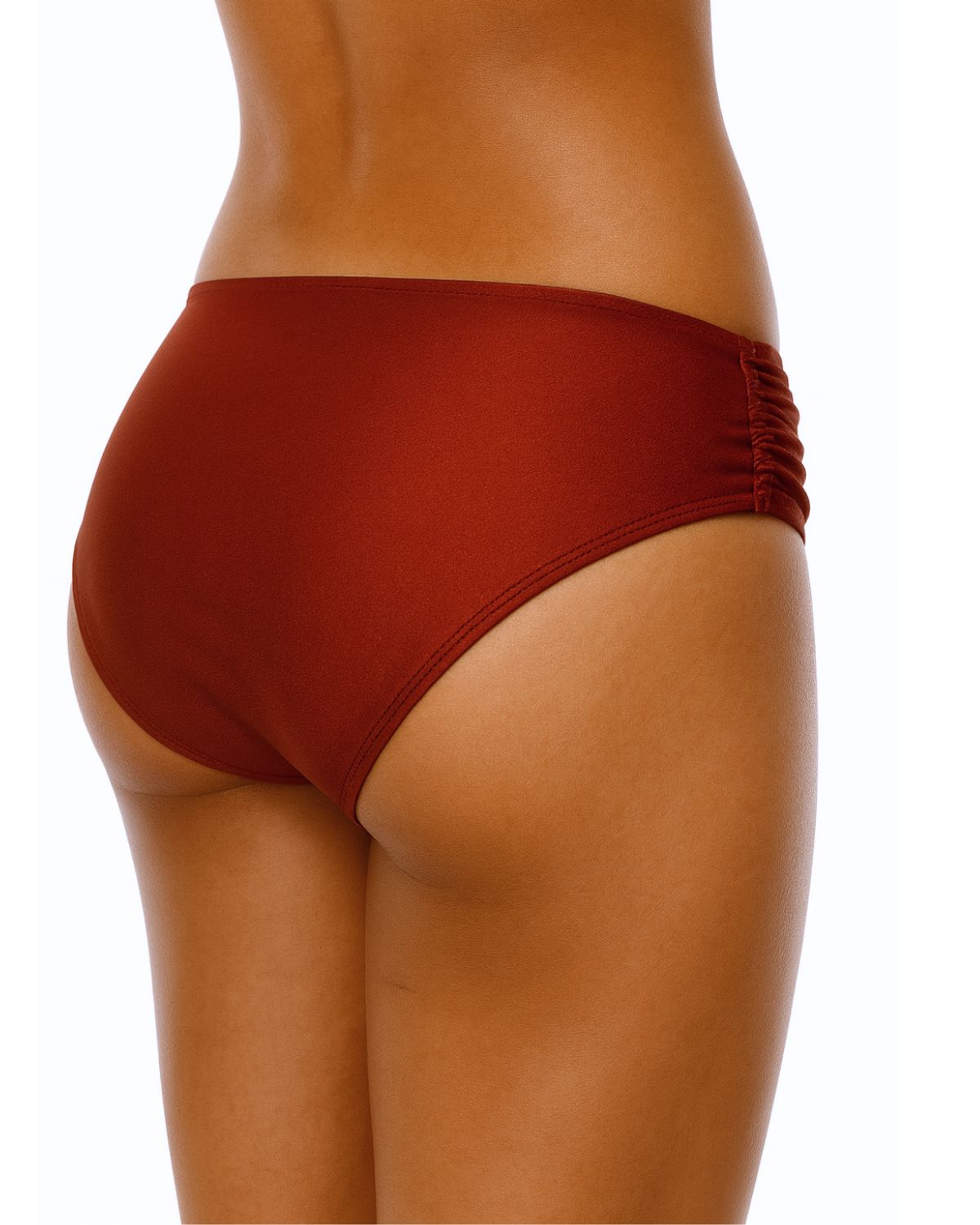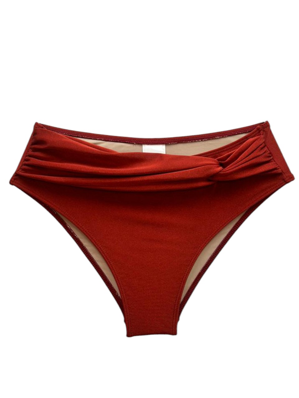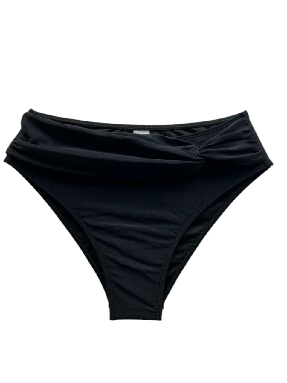 Tanga de biquíni modelo sunquíni, lateral larga e cós alto com detalhe somente na parte da frente de faixa entrelaçada formando um nó.