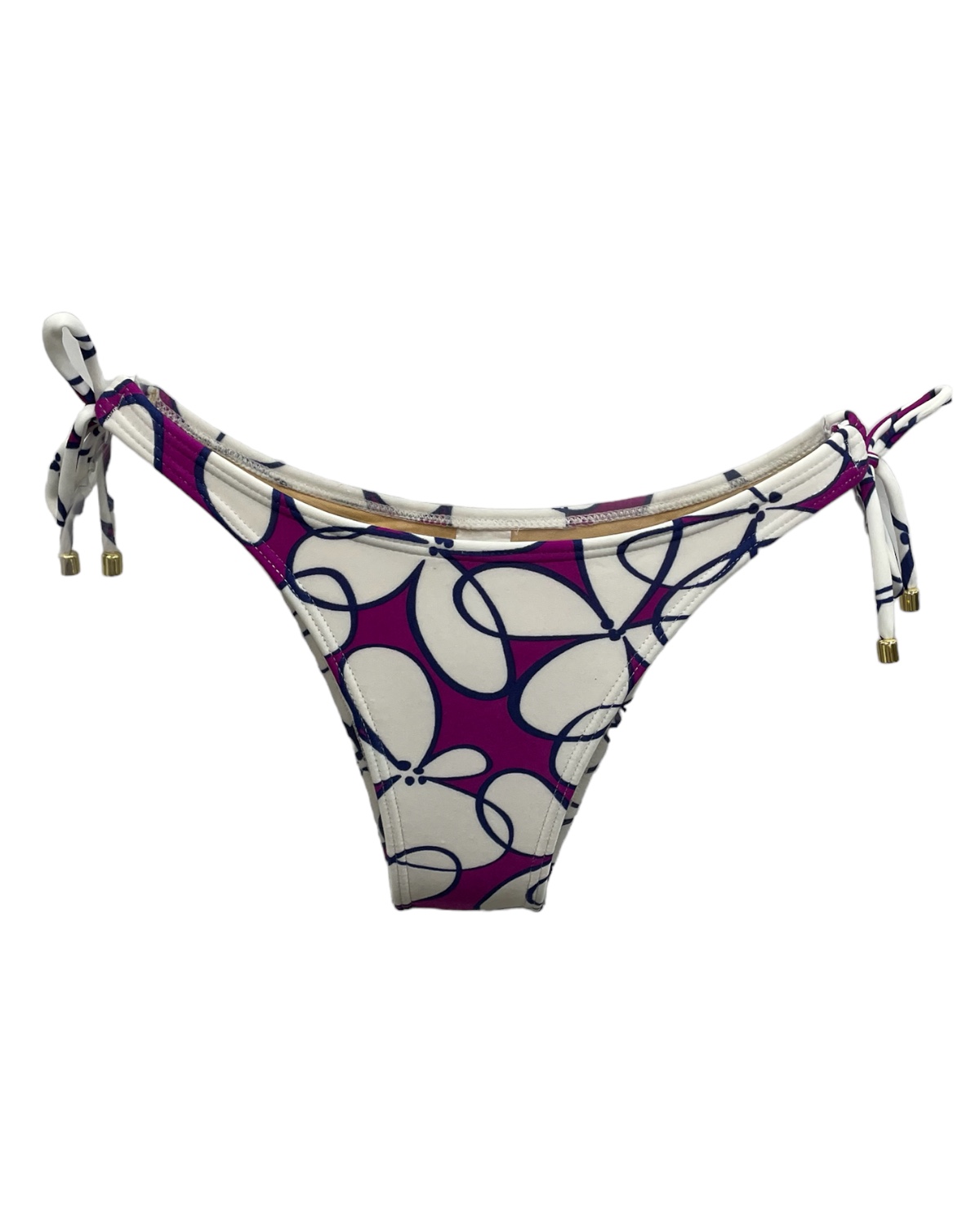 Tanga de biquíni estampada com detalhe de amarração na lateral.