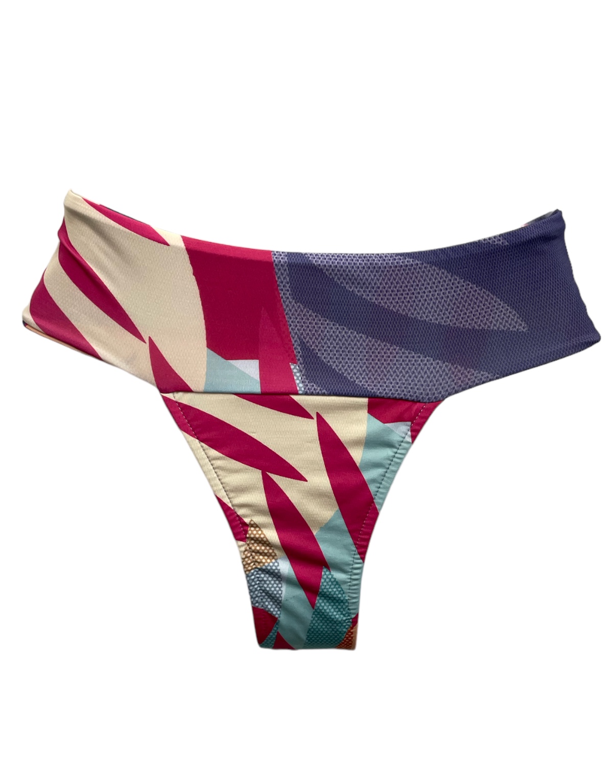 Tanga de biquíni estampada cós pala larga, modelagem media e levemente cavada no bumbum.