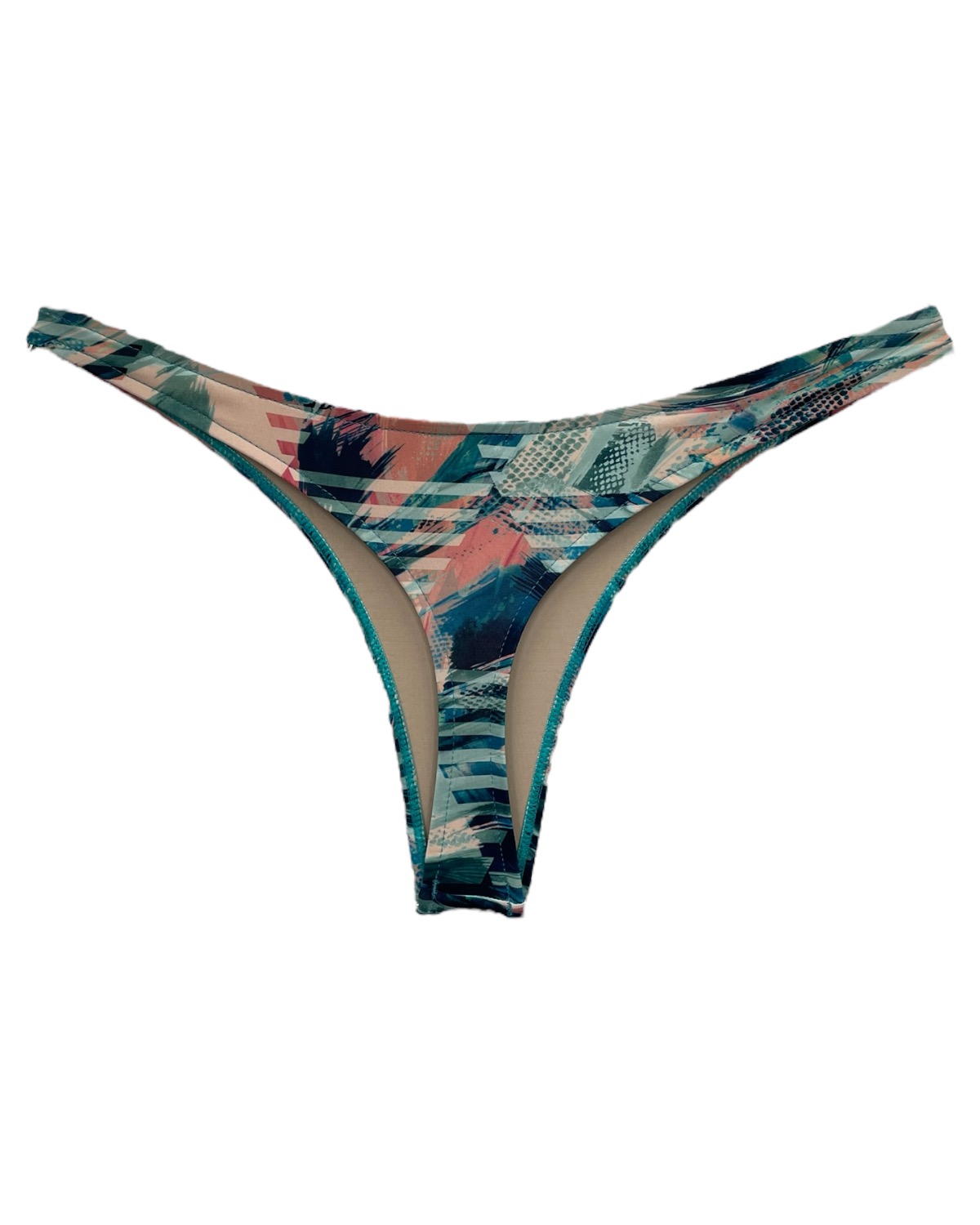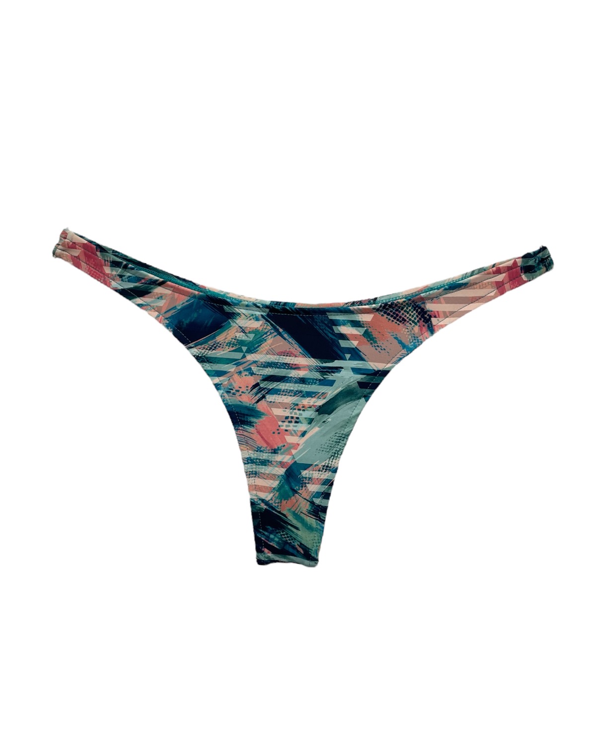 Tanga de biquíni básica com lateral estreita e com costuras embutidas modelo fio dental estampado creta.