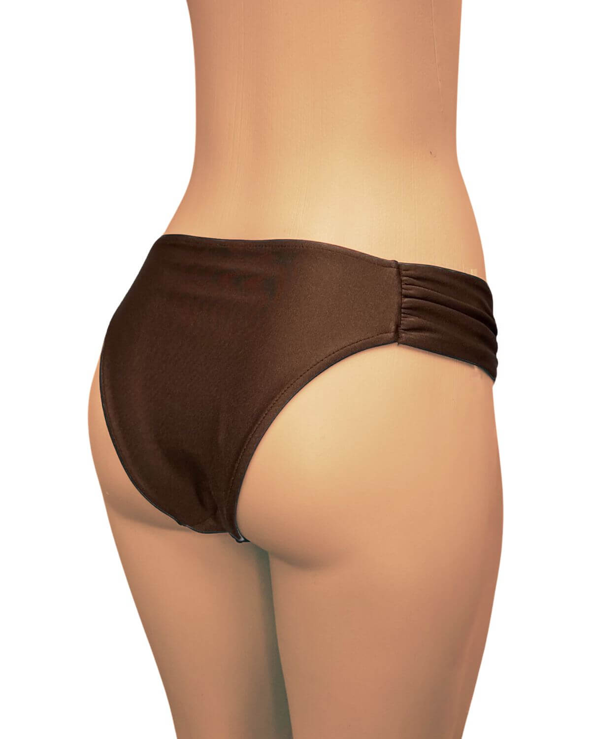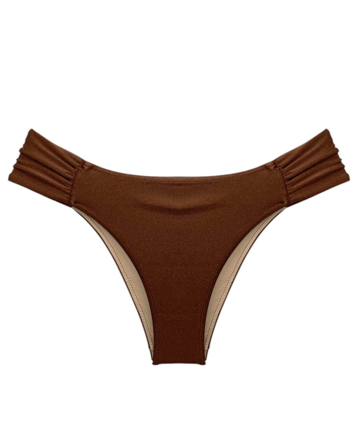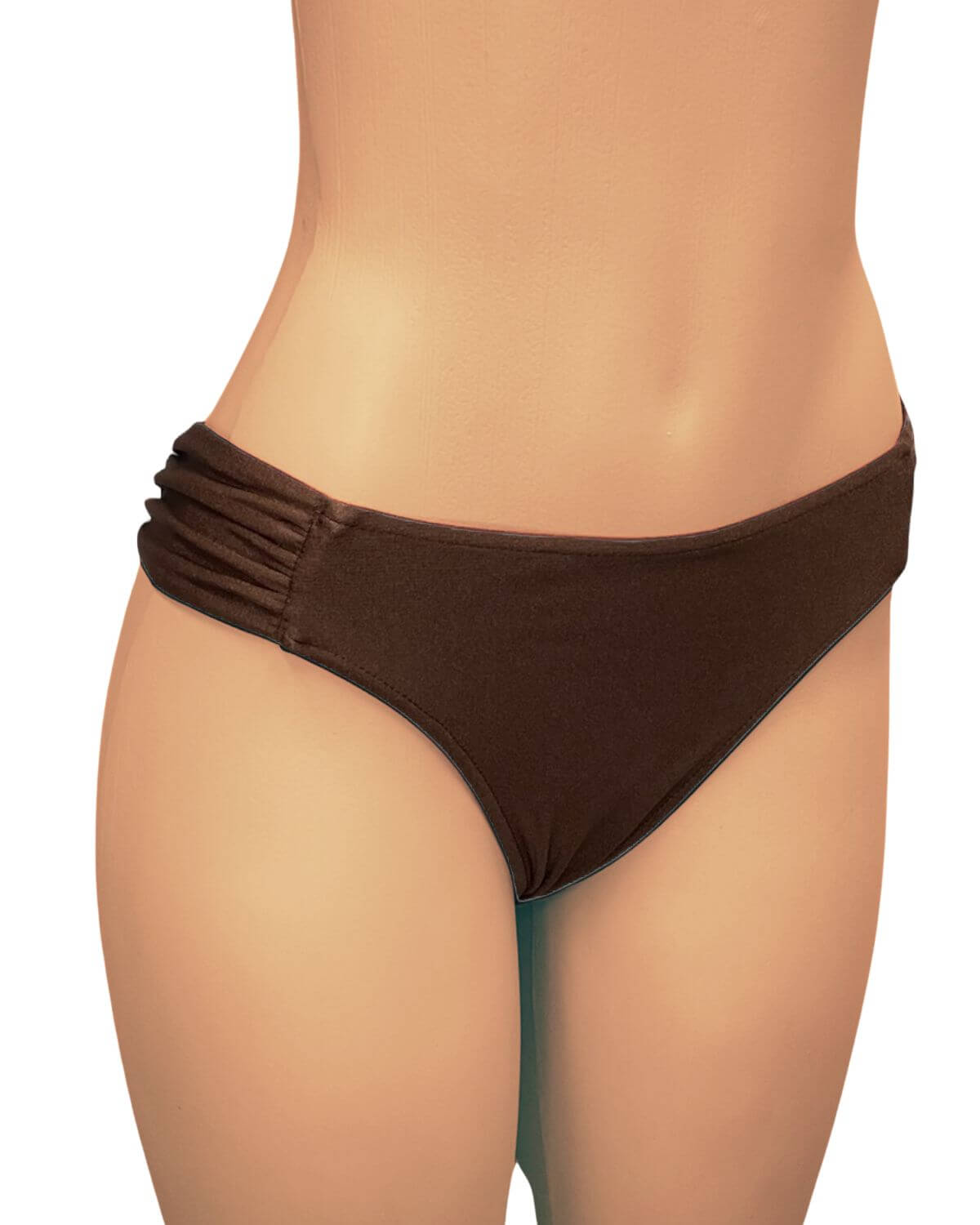 Tanga de biquíni lateral drapeada. Modelagem muito confortável e ajustável ao corpo.