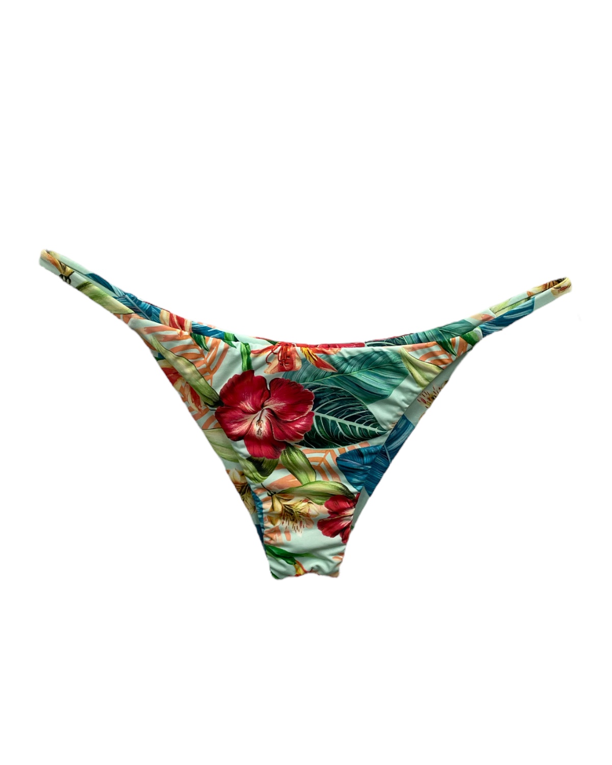 Calcinha de Biquíni lateral fina com costuras internas e elástico embutido na parte frontal. Possui bumbum duplo com recorte central sem costura.