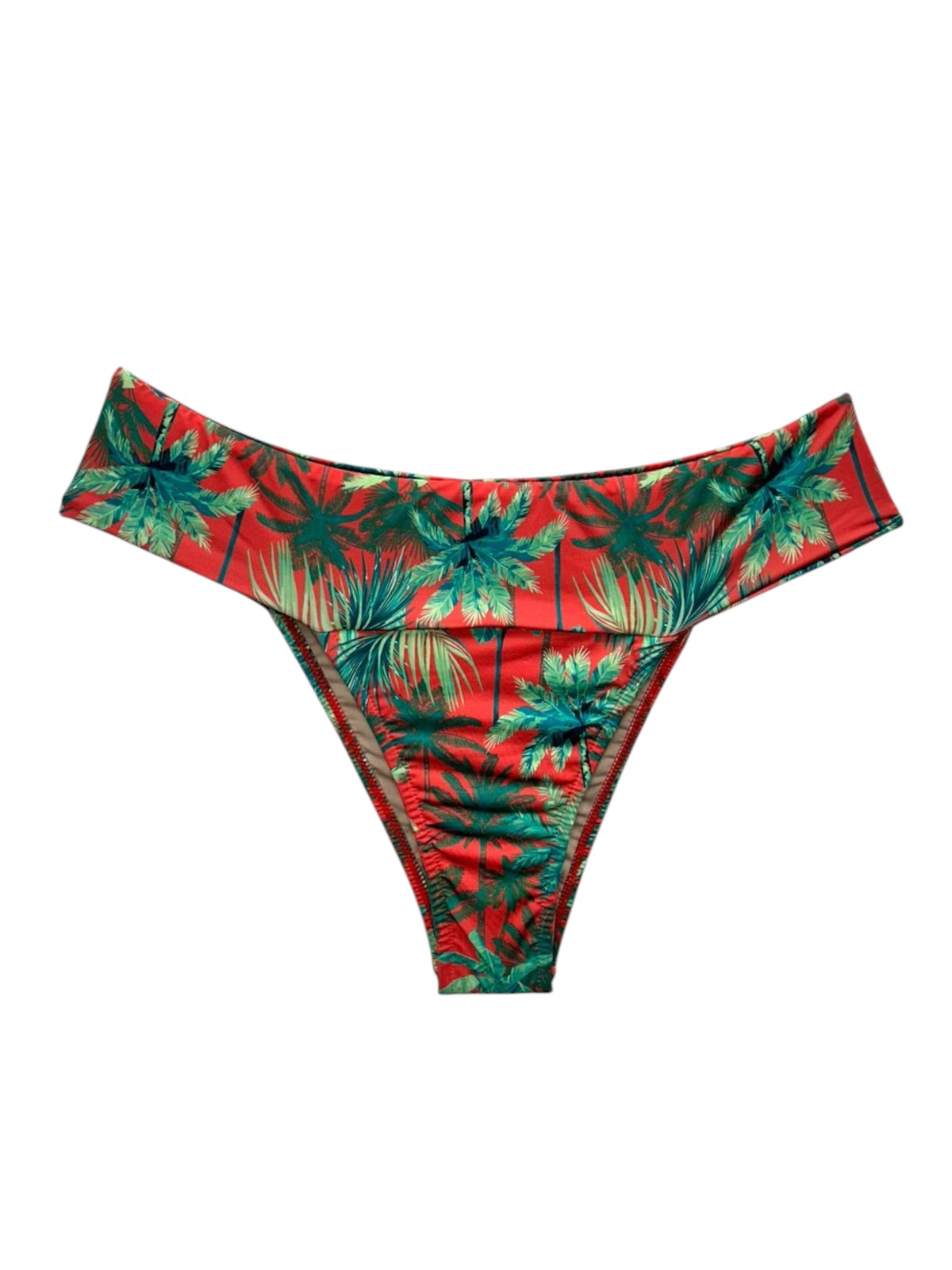 Tanga de biquíni estampada cós pala larga, modelagem media e levemente cavada no bumbum.