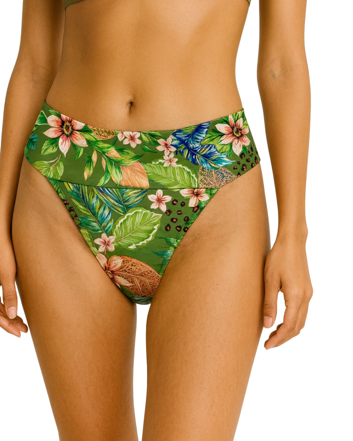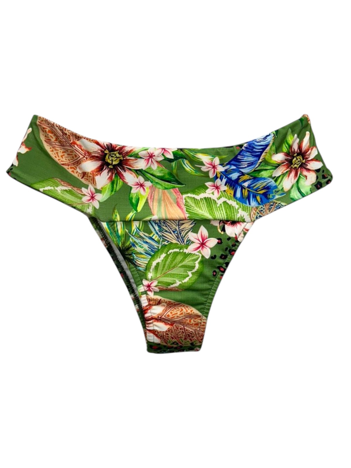 Tanga de biquíni estampada cós pala larga, modelagem media e levemente cavada no bumbum.