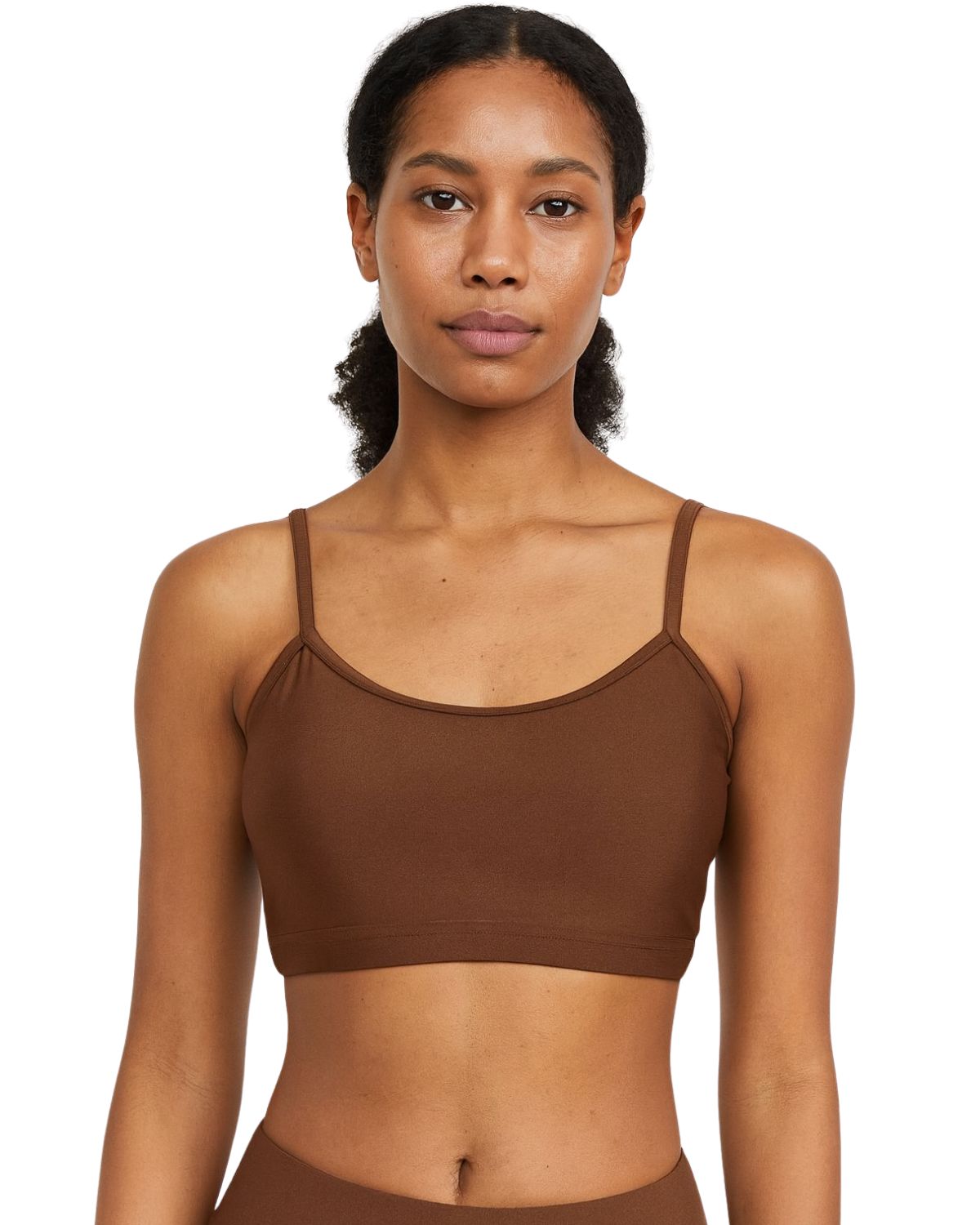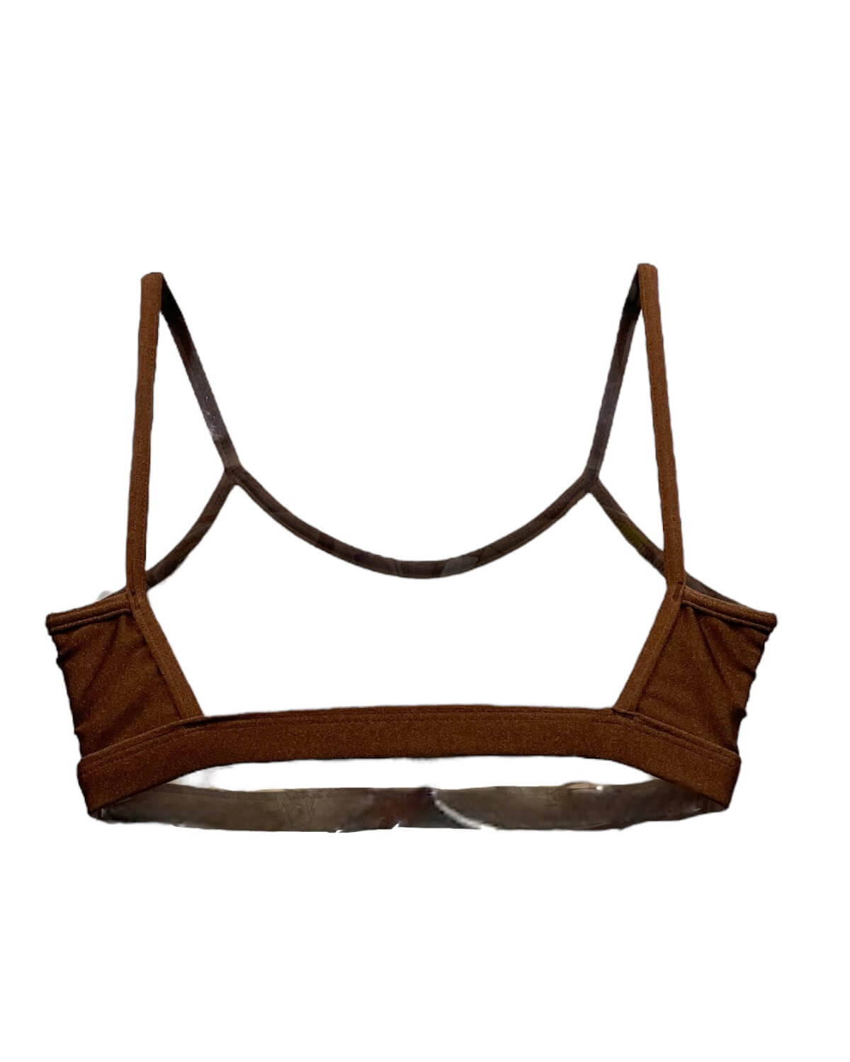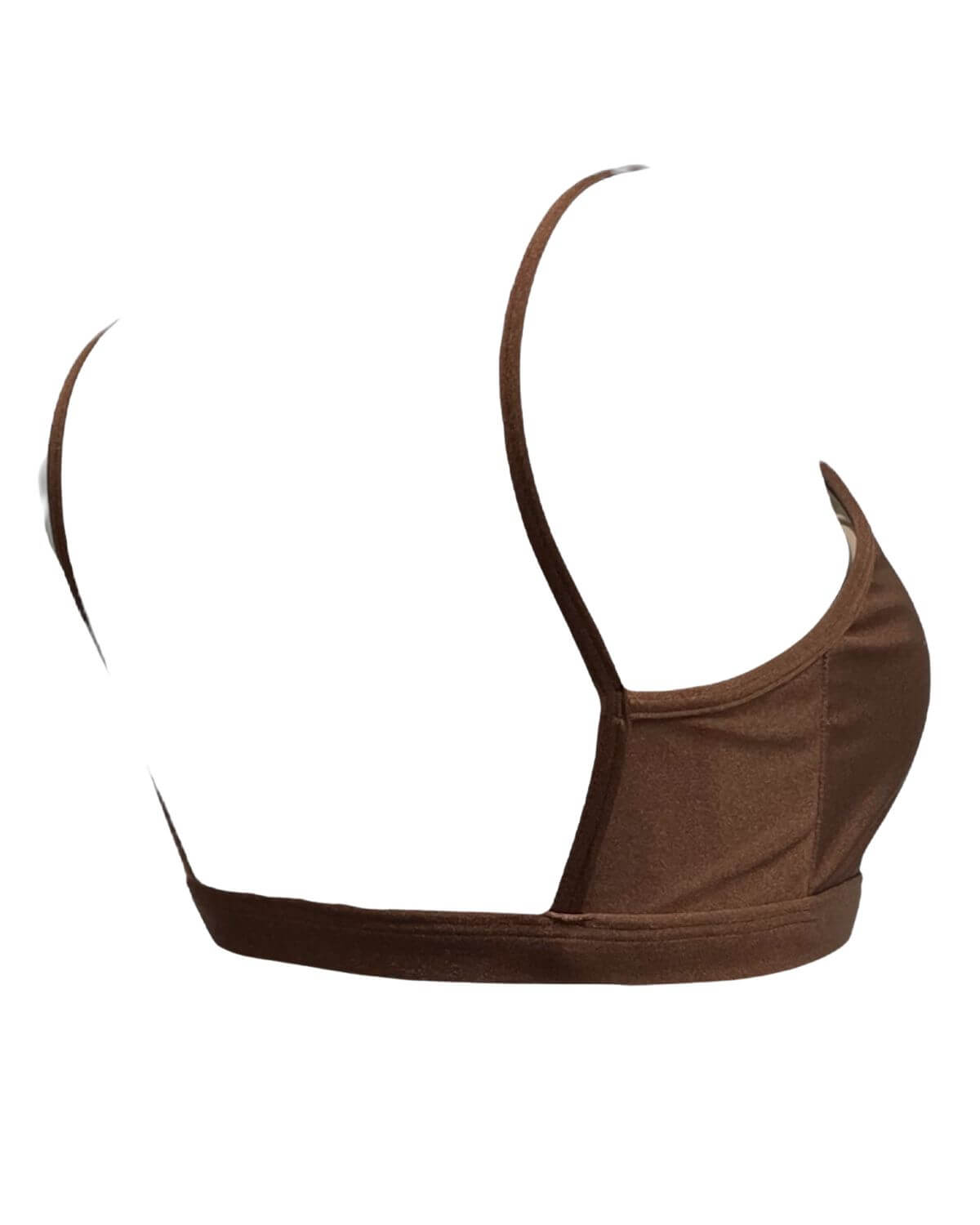 Top básico com bojo removível, cós elástico e alças estreitas, possui decote redondo frontal e nas costas abertas.