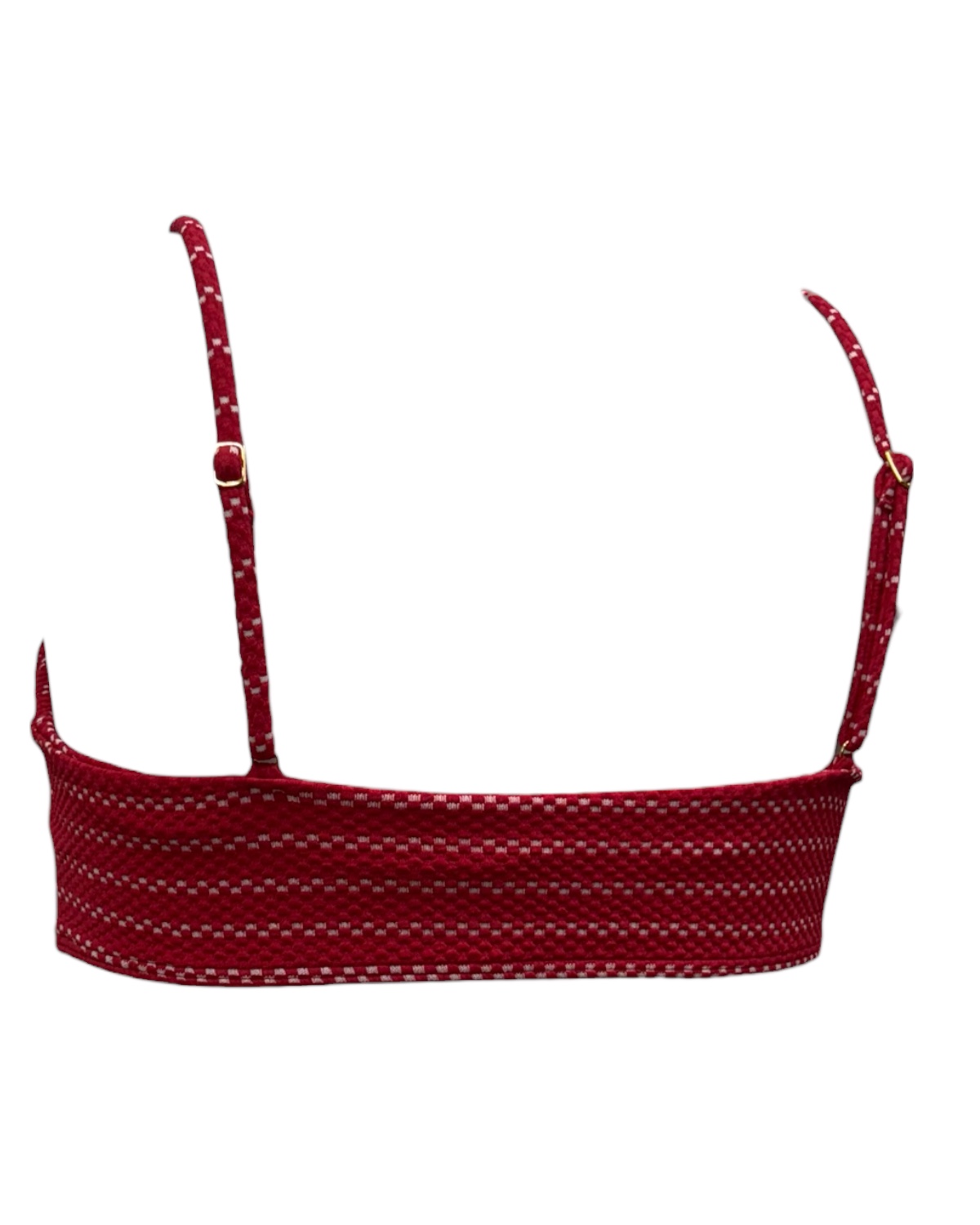 Top de biquíni básico decote redondo, costas reta, alças reguláveis e bojo removível. Modelo ideal para quem busca conforto e praticidade. Confeccionado em tecido com textura. Sua superfície apresenta leve relevo formando o desenho em Listra Branco.