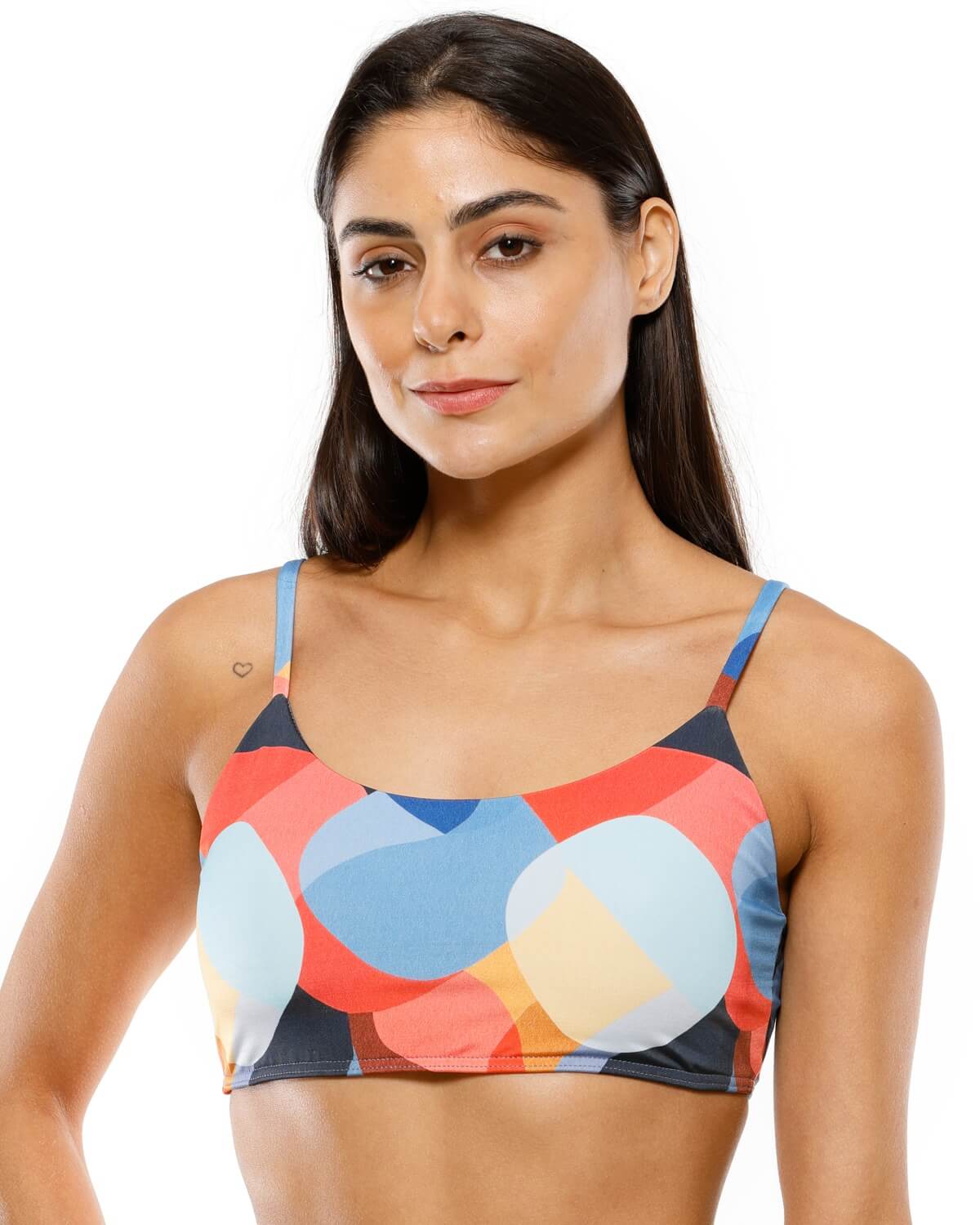 Top de biquíni básico estampado com decote redondo, costas reta, alças reguláveis e bojo removível. Modelo ideal para quem busca conforto