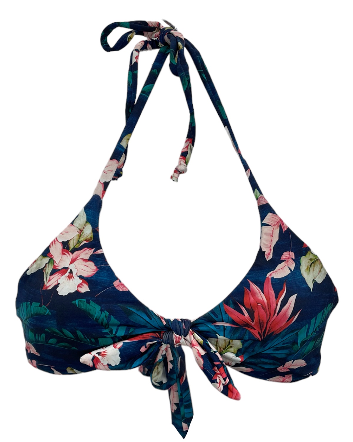 Top de biquíni com amarração no pescoço e nas costas. Possui laço frontal e bojo removível.