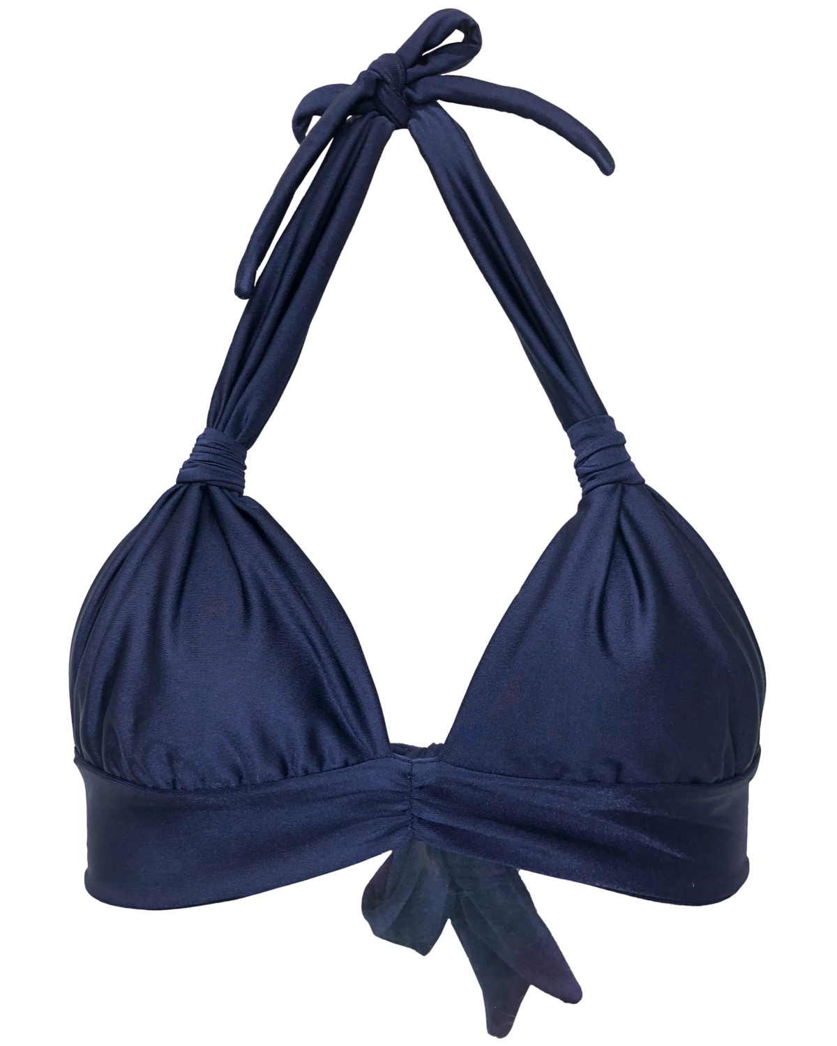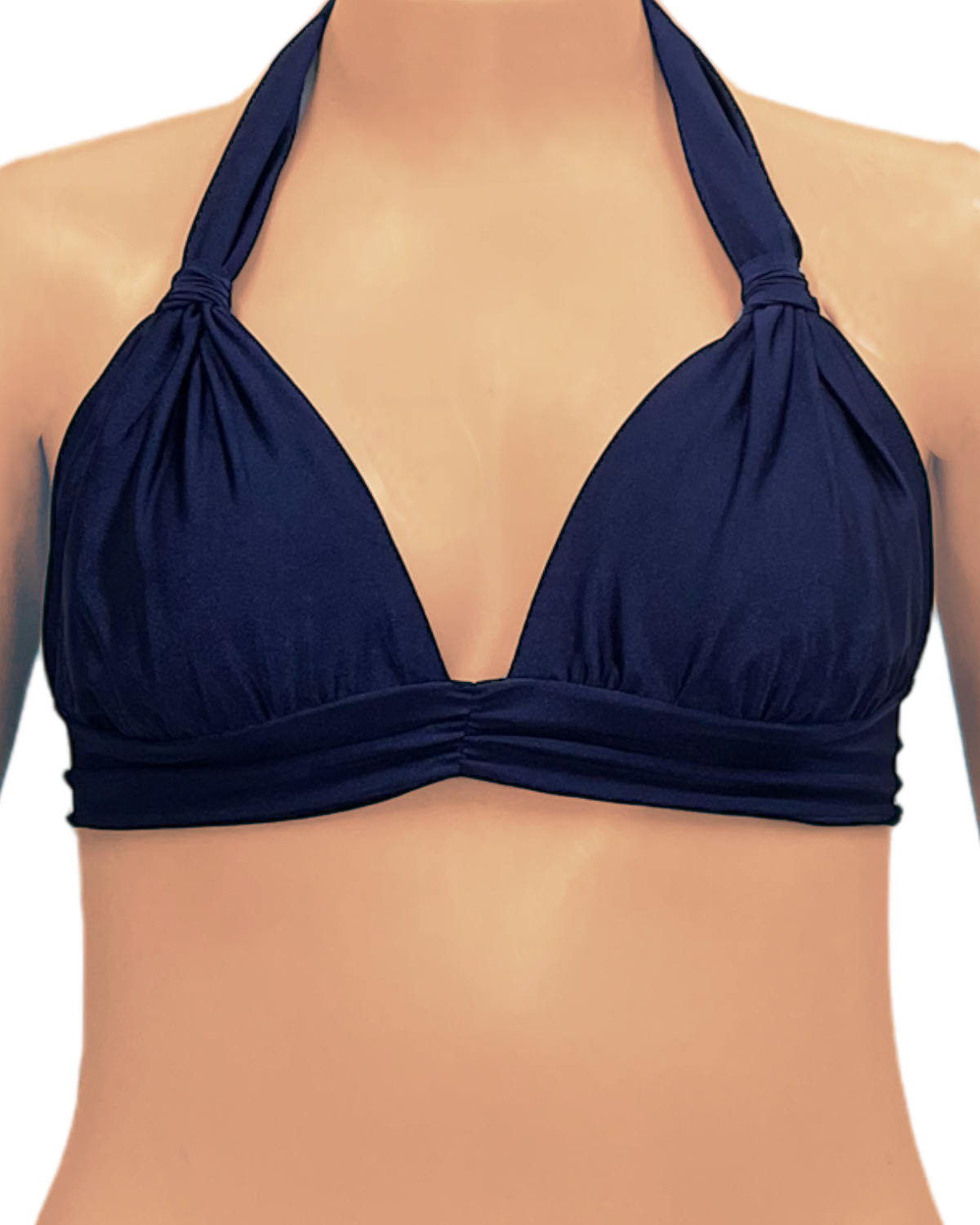 Top de biquíni modelo frente única fixo sem bojo, amarração no pescoço e costas.