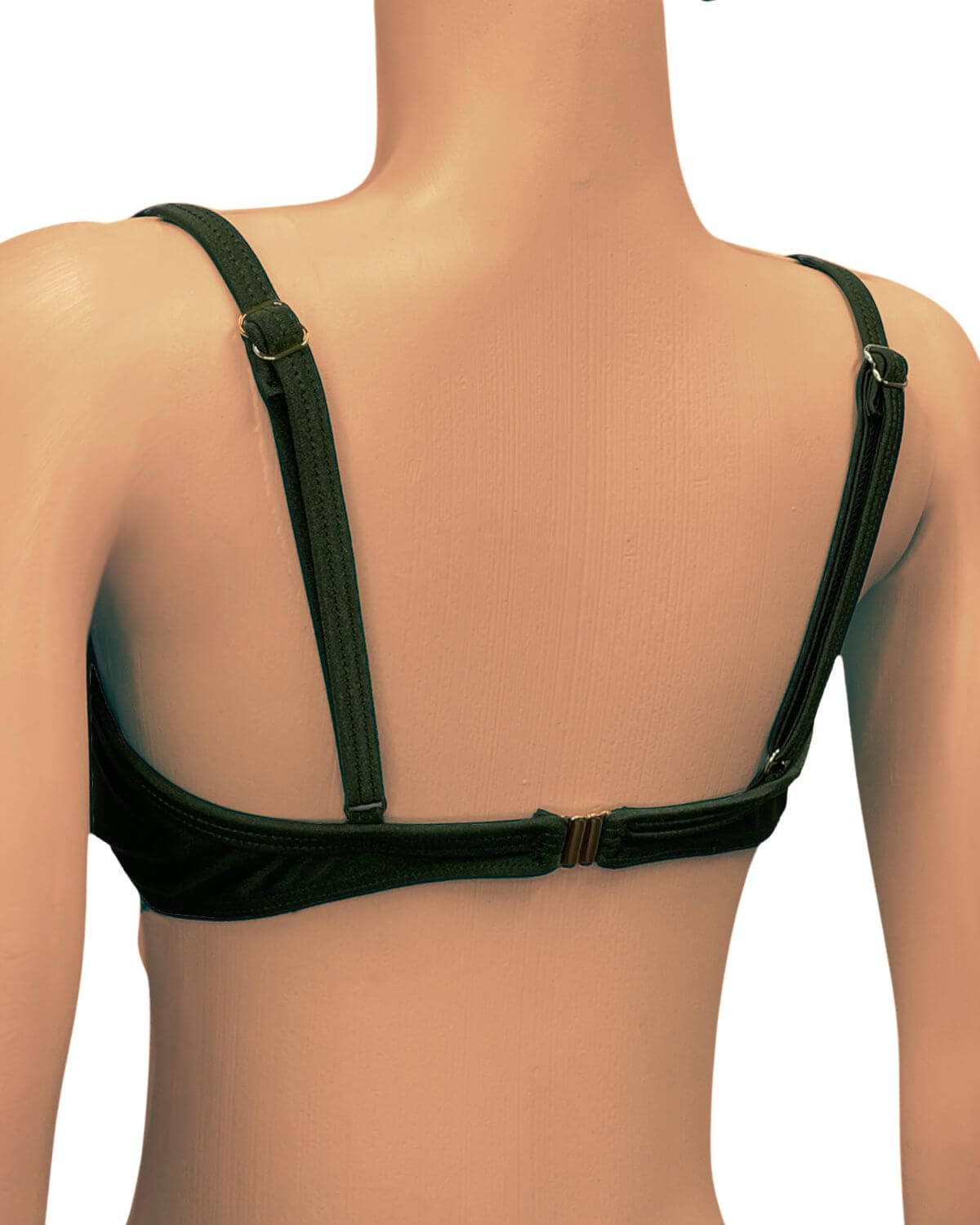 Top de biquíni meia taça com bojo possui alças fixas e fecho nas costas.