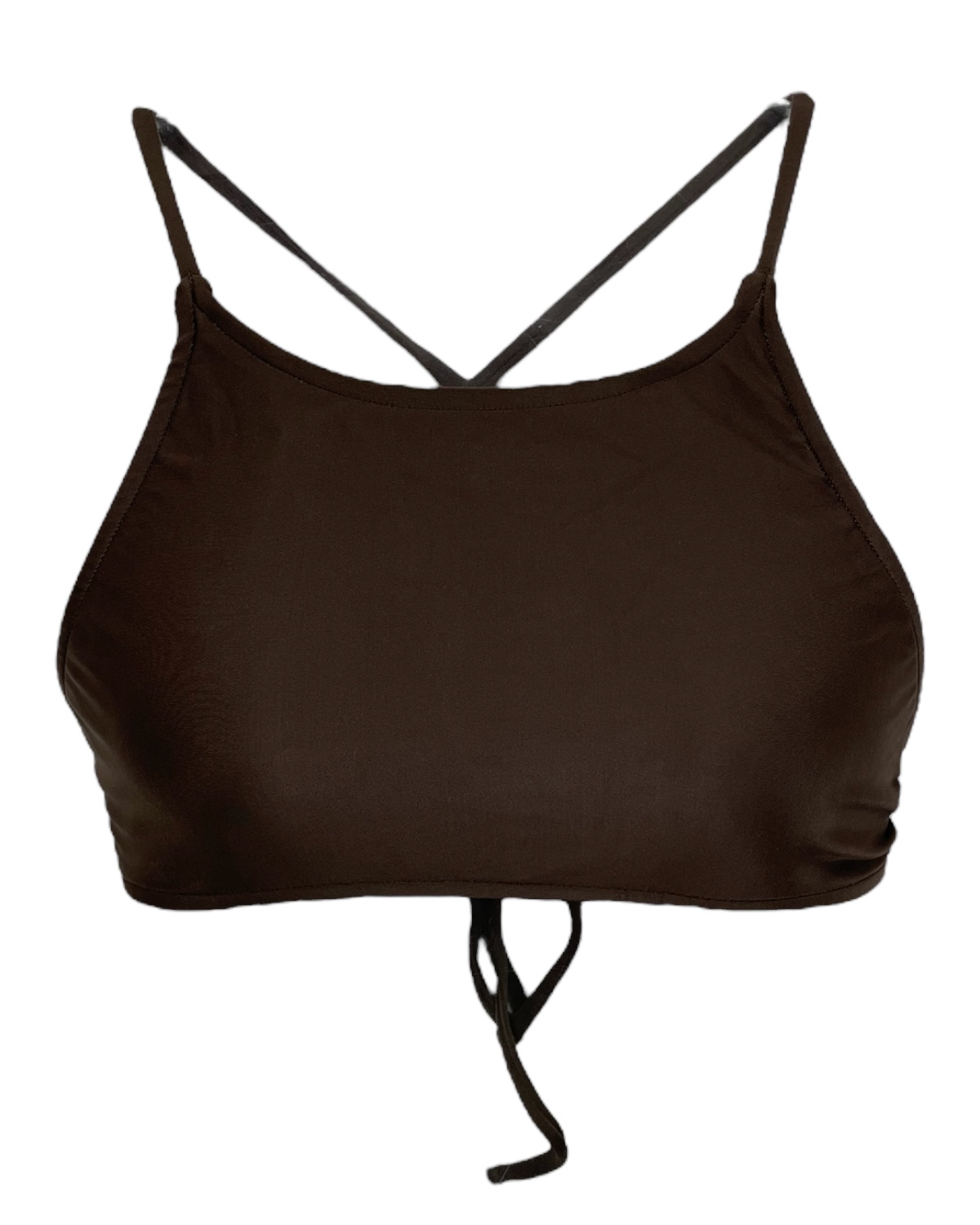 Top de biquíni modelo cropped sem bojo com decote abaixo do pescoço e cruzado nas costas. Modelo ideal para quem busca conforto e liberdade. Confeccionado com Tecido Composição do tecido: 85% poliamida e 15% Elastano Bojo composição: 100% Poliéster, enchimento 100% Poliuretano. Proteção UV. 50 +