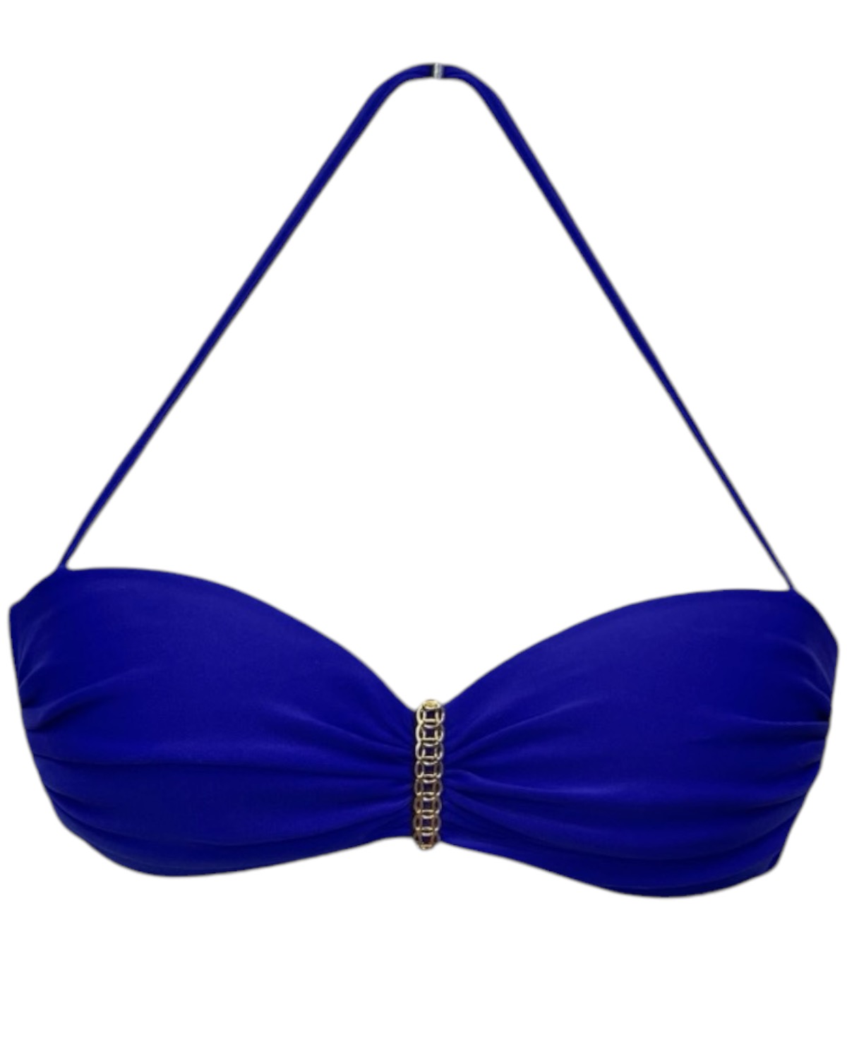 Top de biquíni tomara que caia com bojo e fivela , possui alças removíveis no pescoço e amarração nas costas.