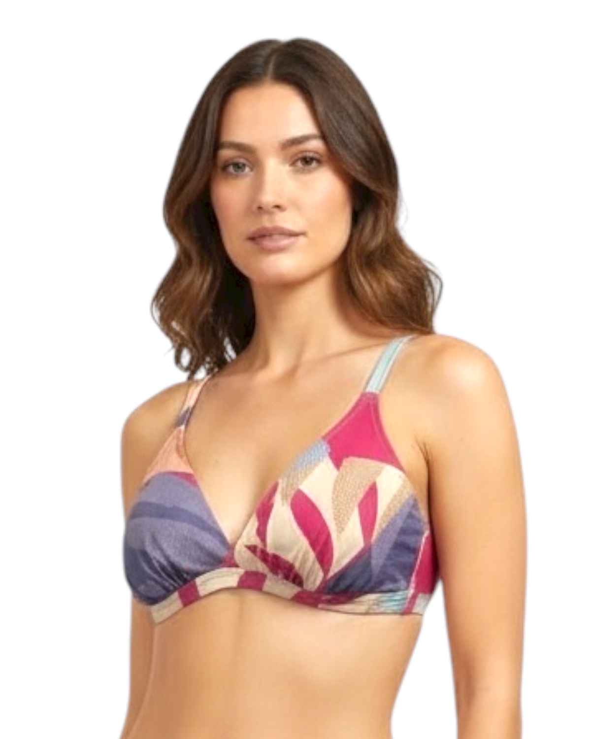 Top de biquíni com bojo removível, levemente transpassado na frente com alças finas, reguláveis e fecho nas costas. Modelo muito confortável com boa sustentação para os seios.