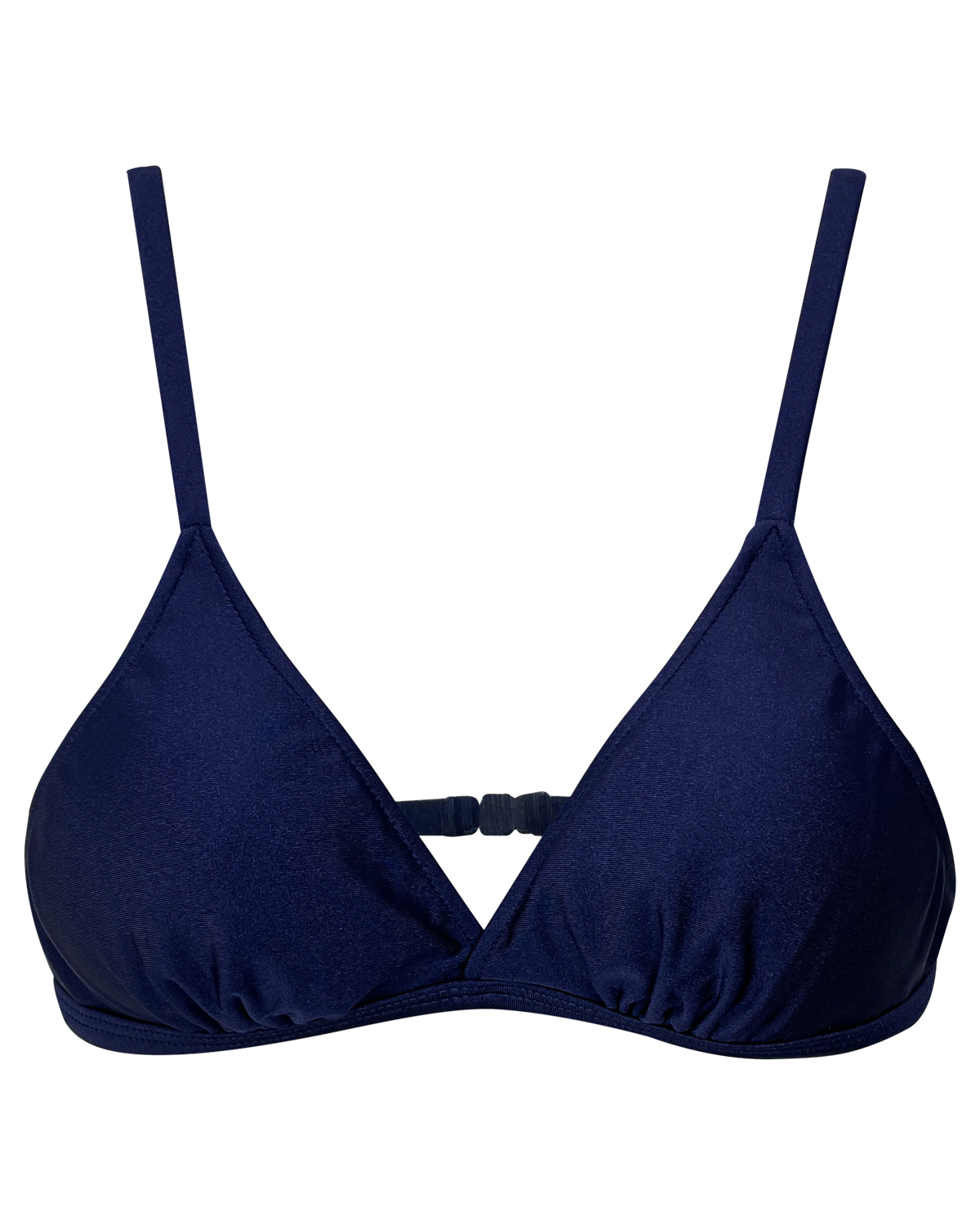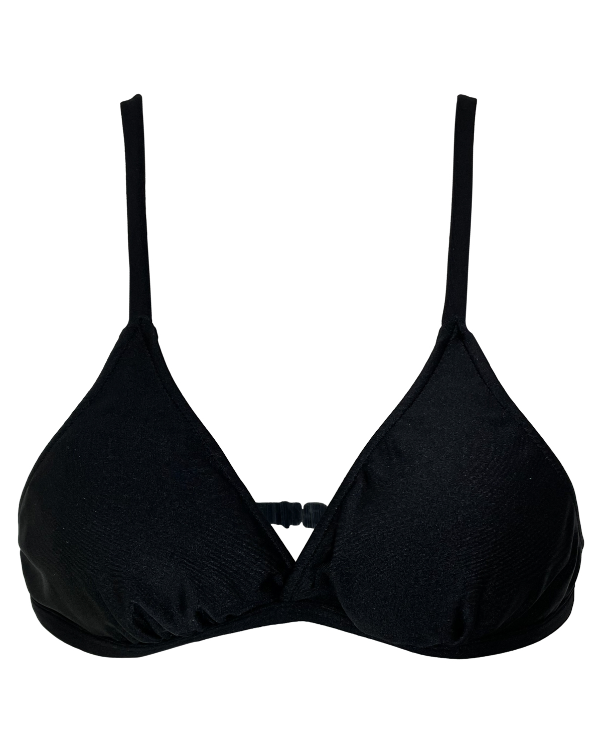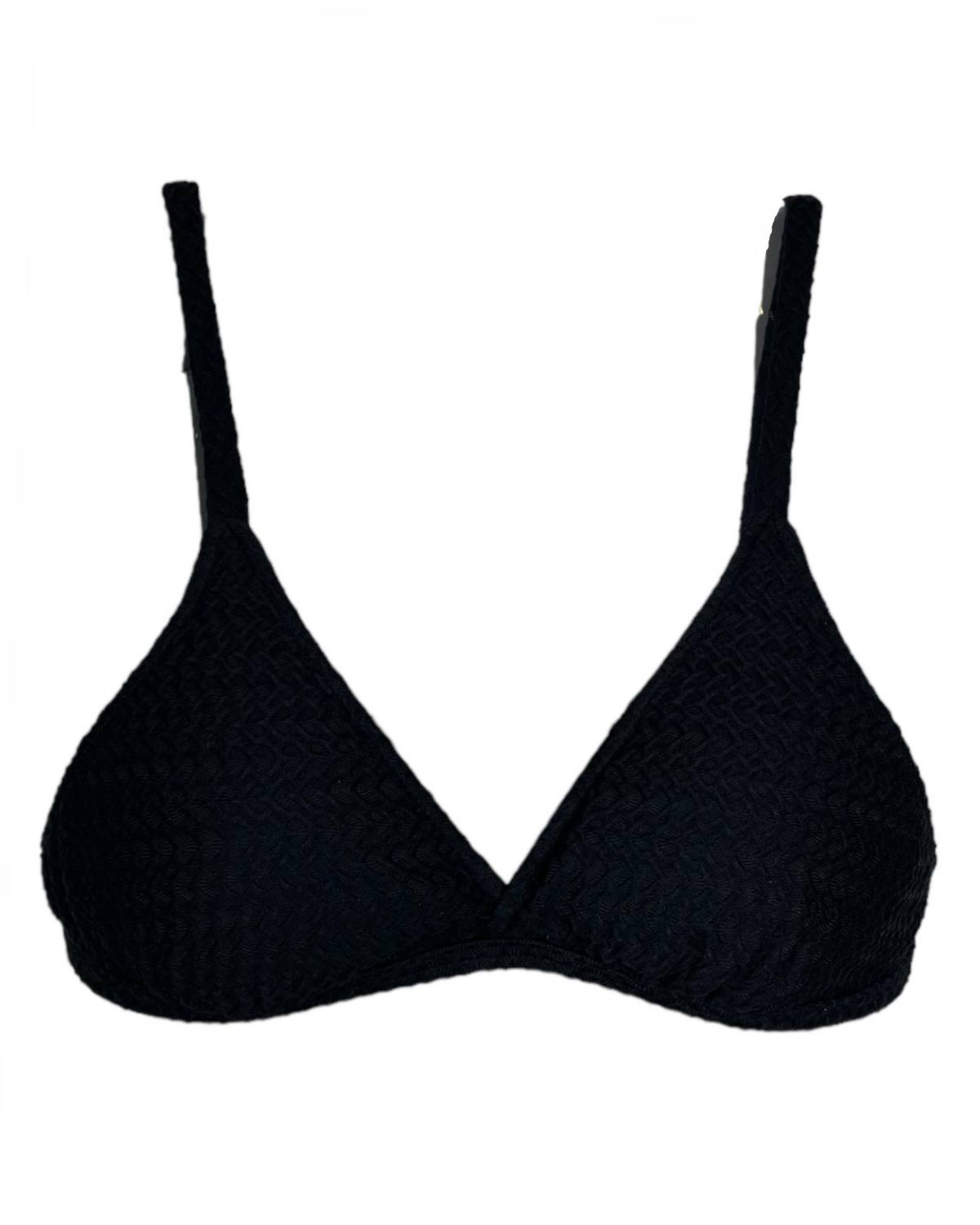 Top de biquíni com bojo removível, levemente transpassado na frente com alças finas, reguláveis e fecho nas costas.