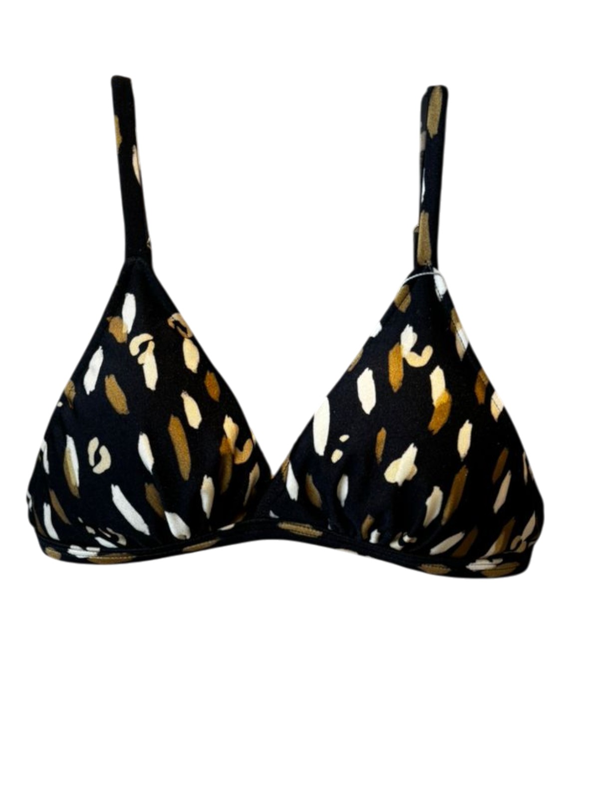 Top de biquíni com bojo removível, levemente transpassado na frente com alças finas, reguláveis e fecho nas costas.
