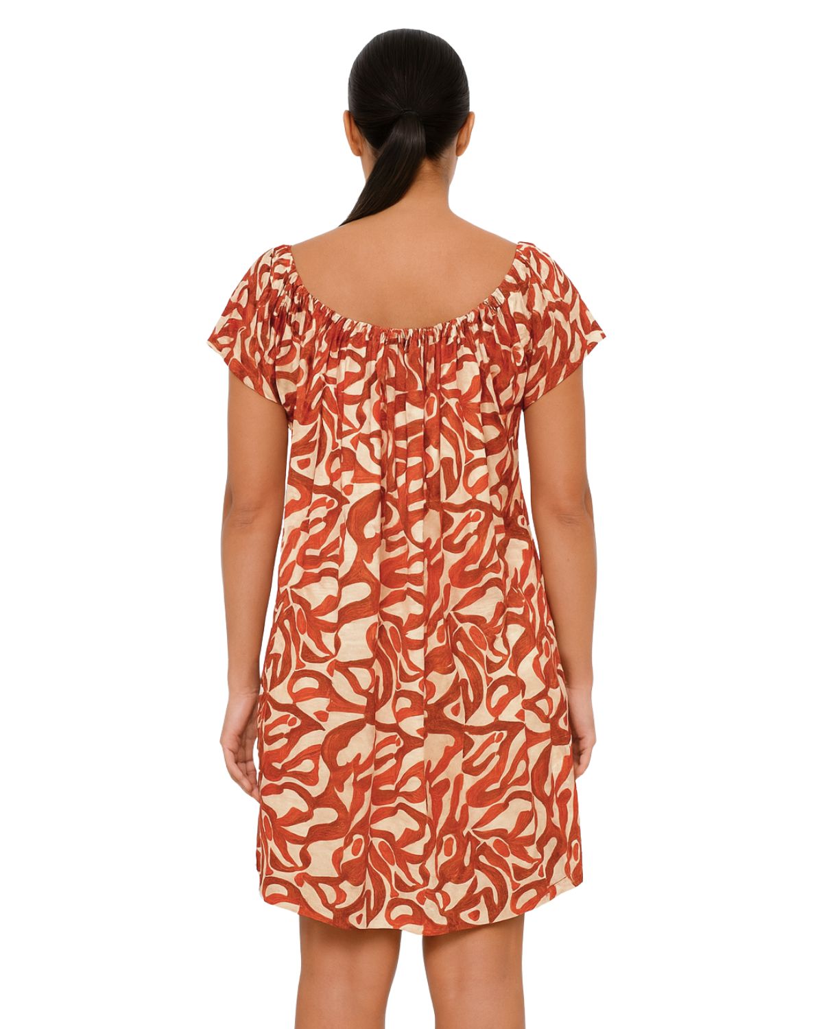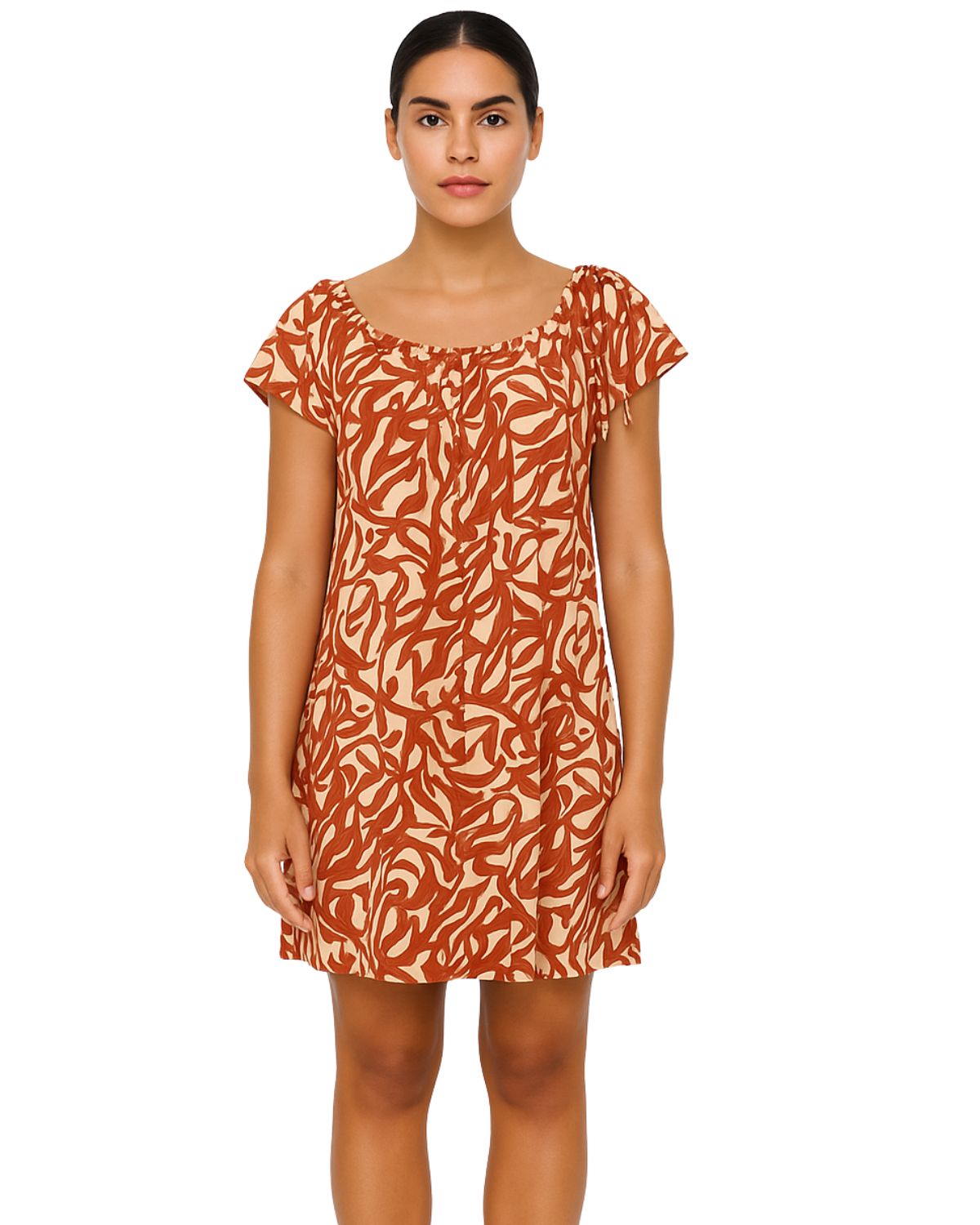Vestido curto com amarração no ombro . Modelo confortável e ajustável ao corpo. Pode ser usada como saída de praia e também para compor look casual.