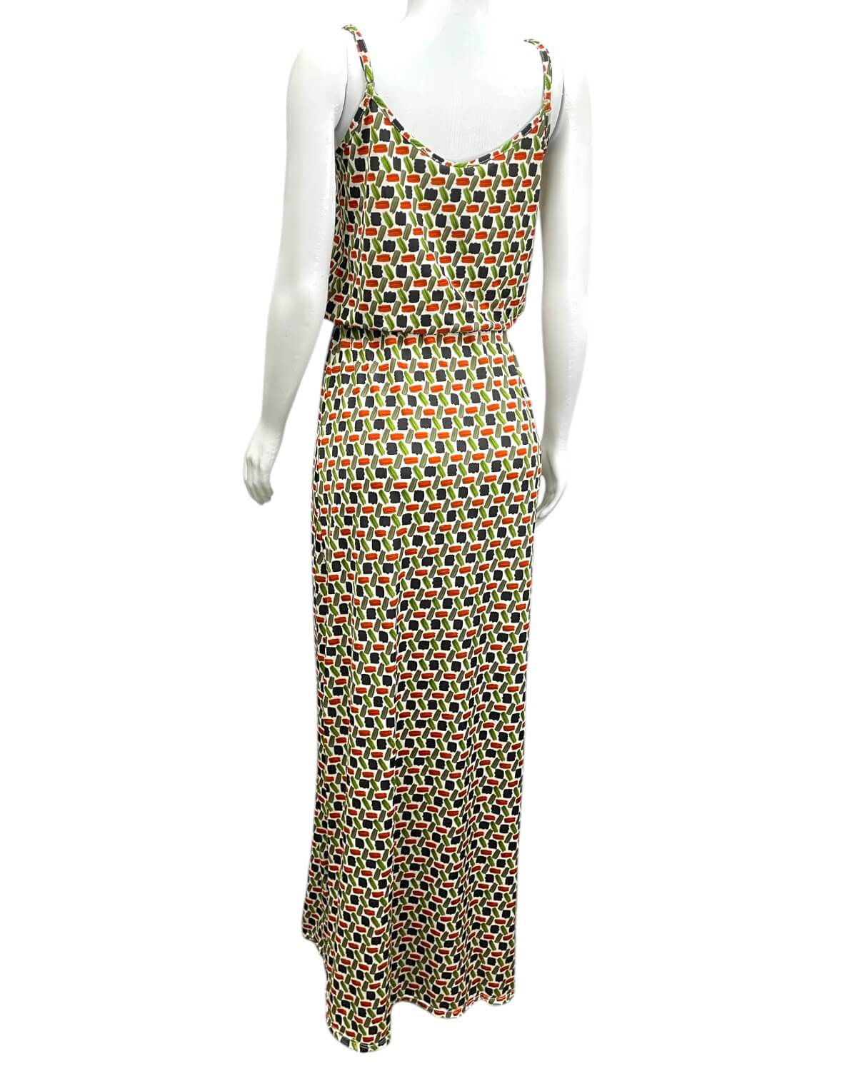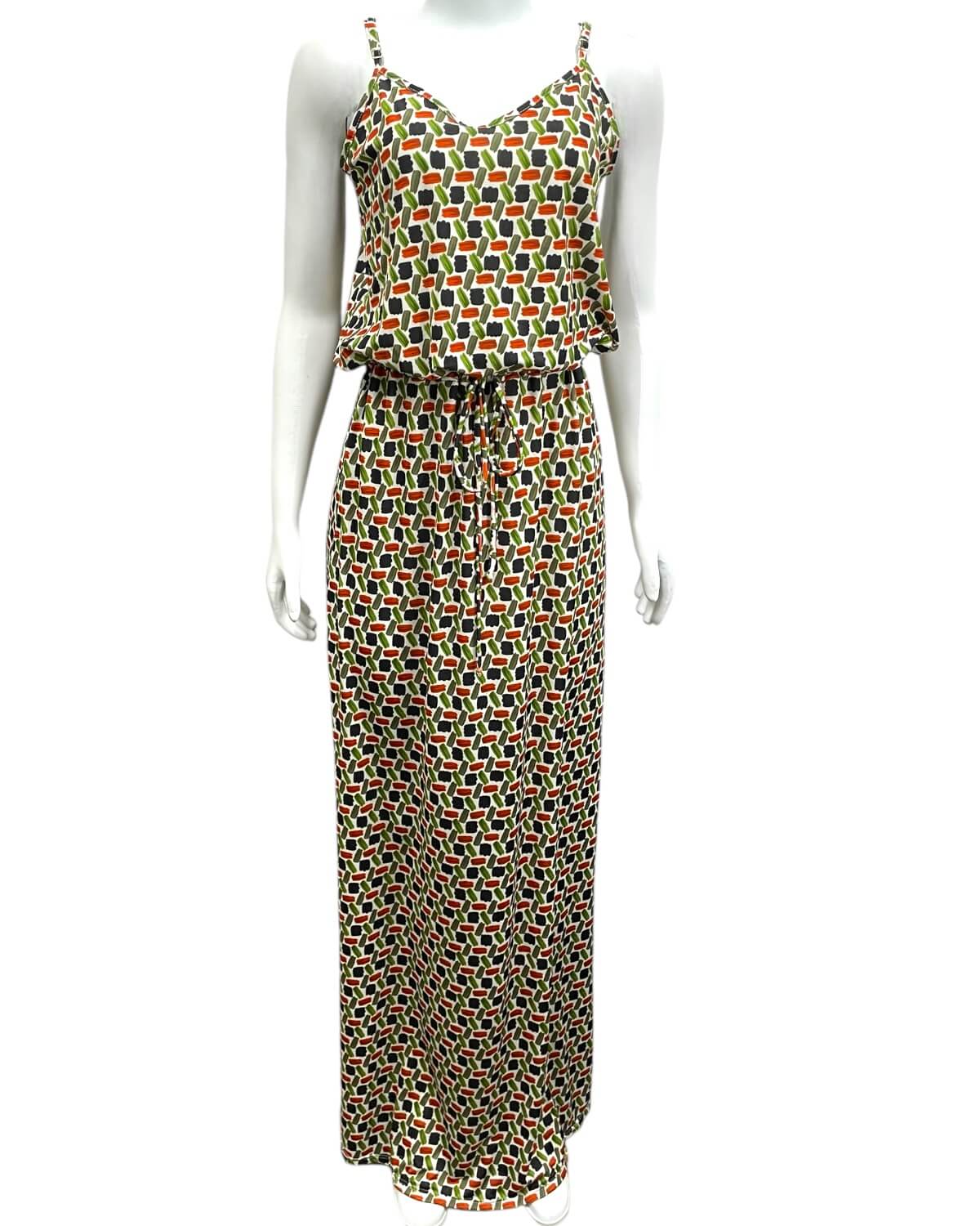 Vestido longo com alças finas e reguláveis com ajuste na cintura. Modelo reto e confortável .